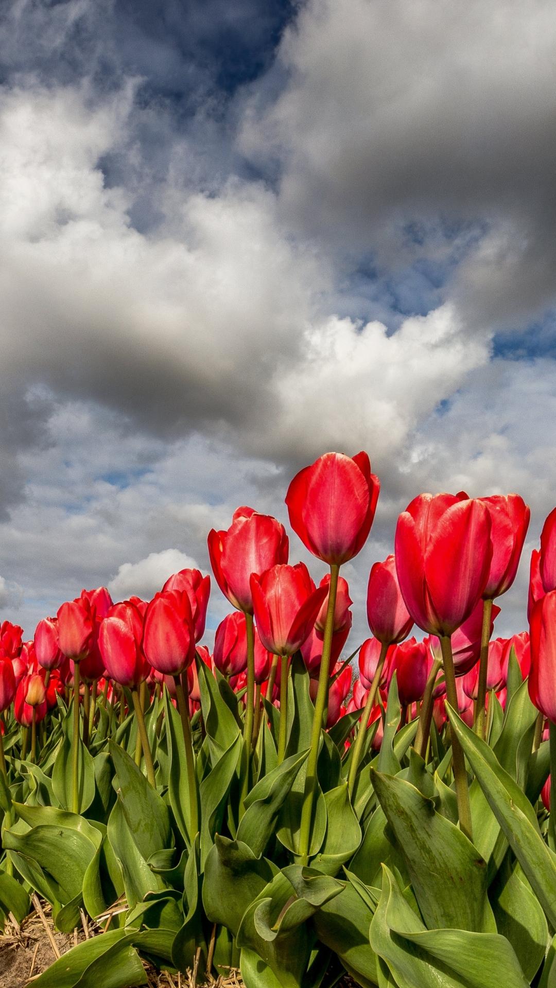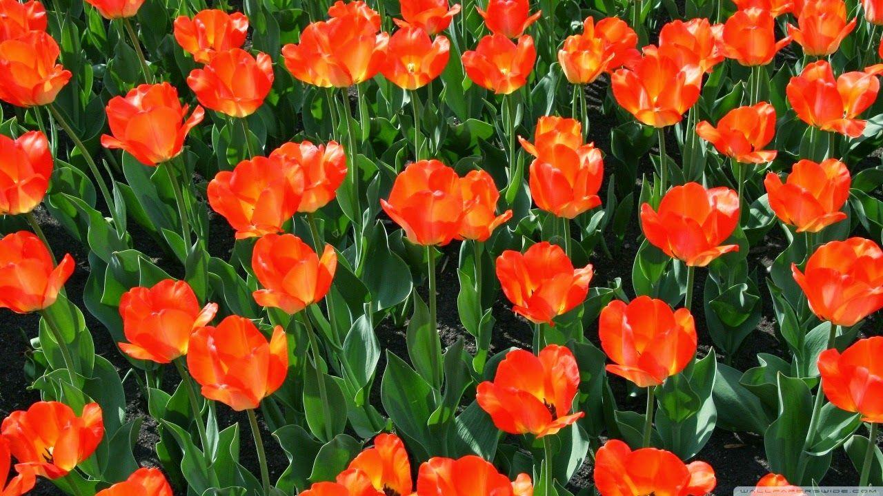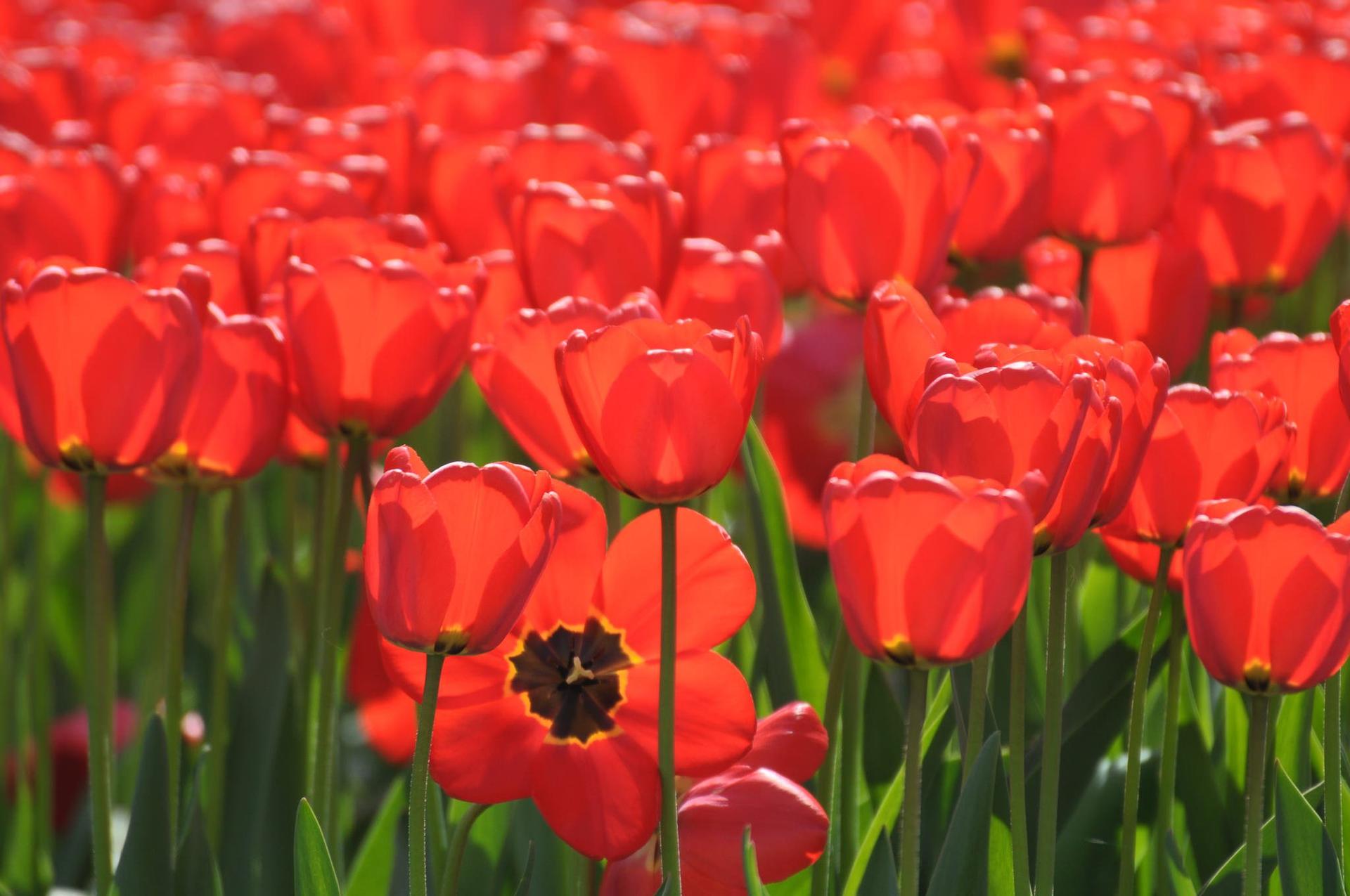 поле красных тюльпанов