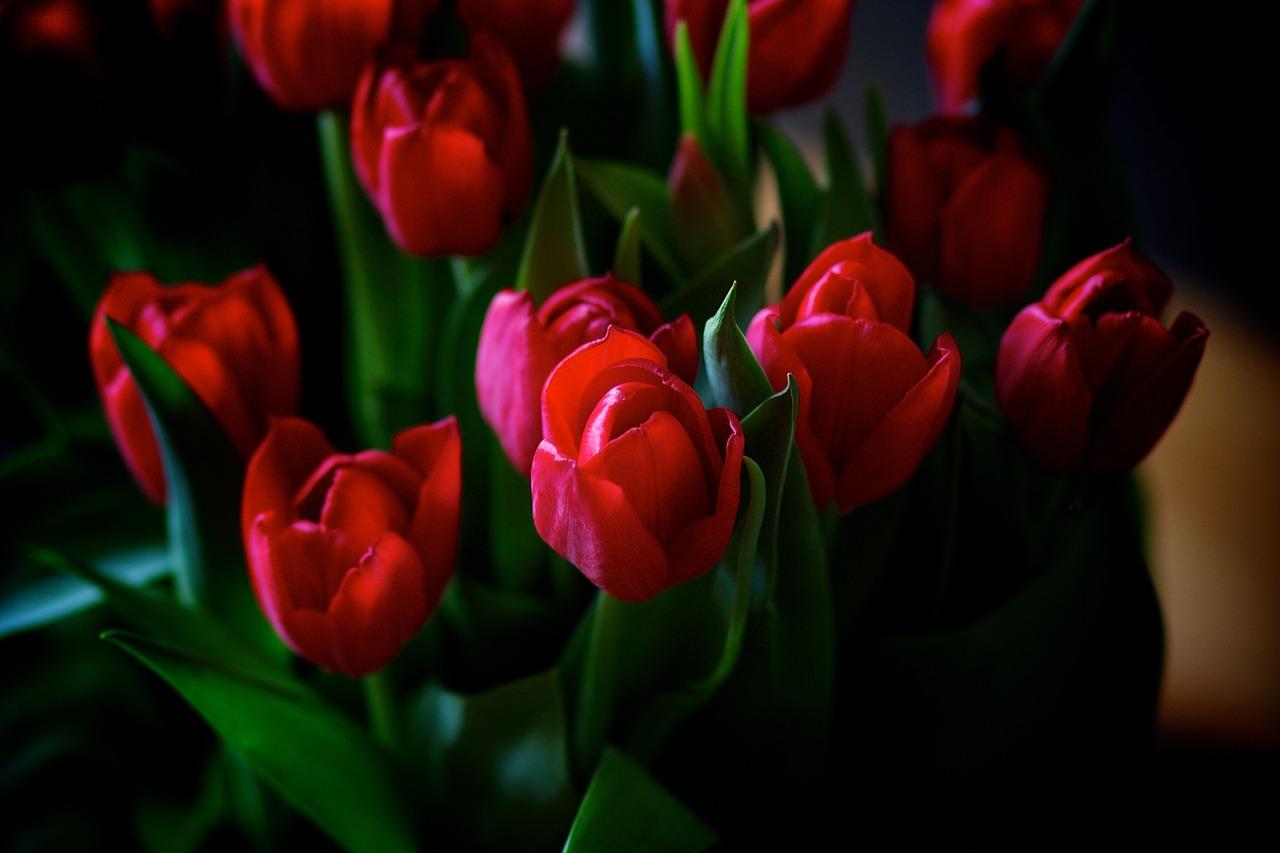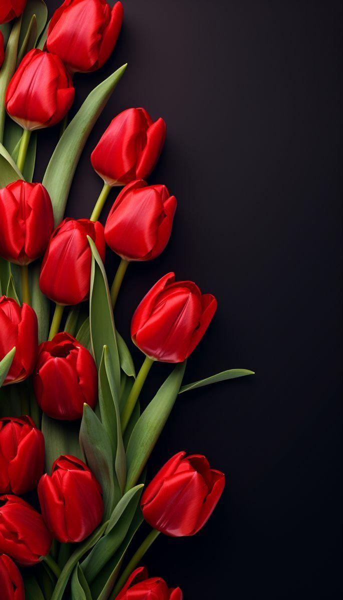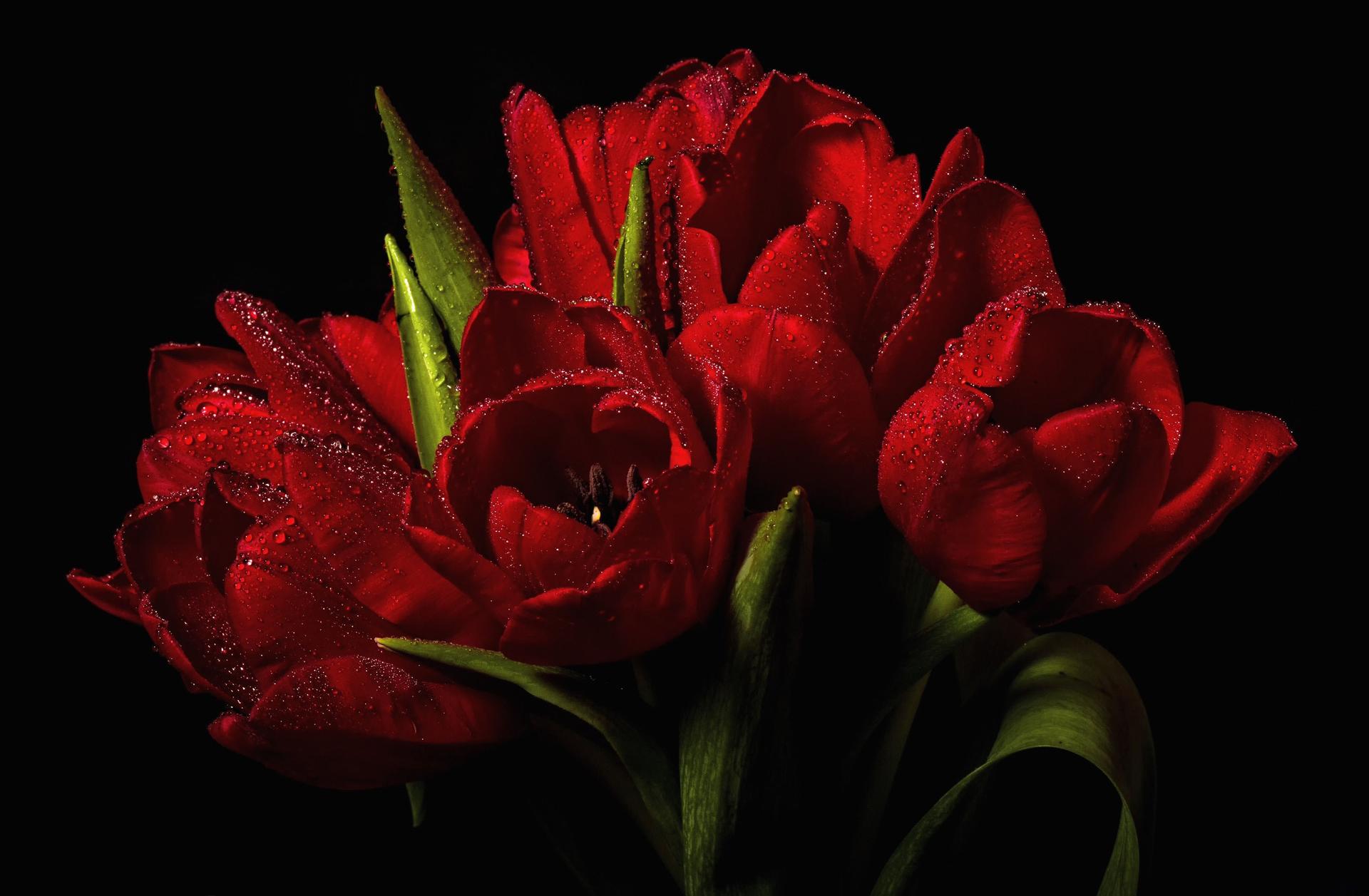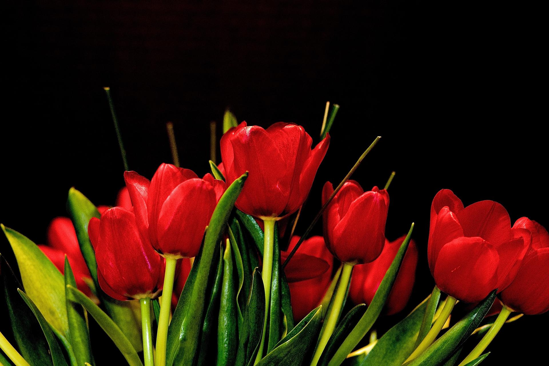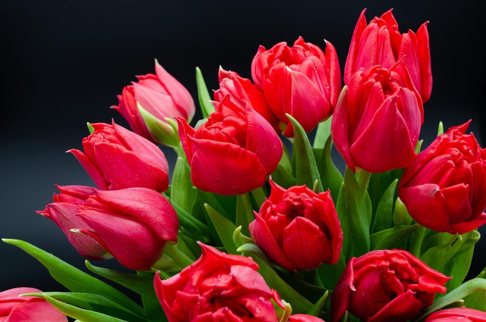 красные тюльпаны на темном фоне