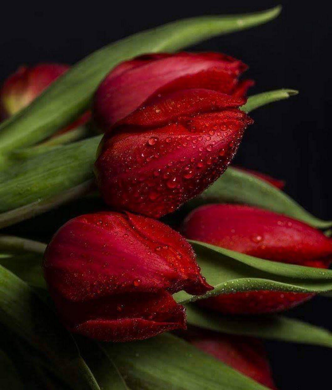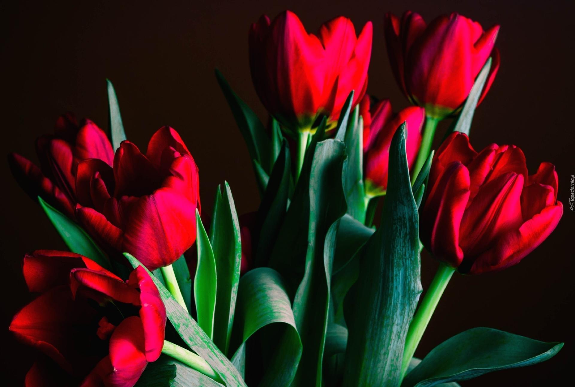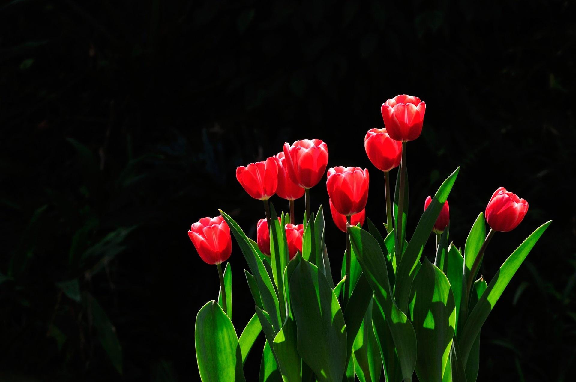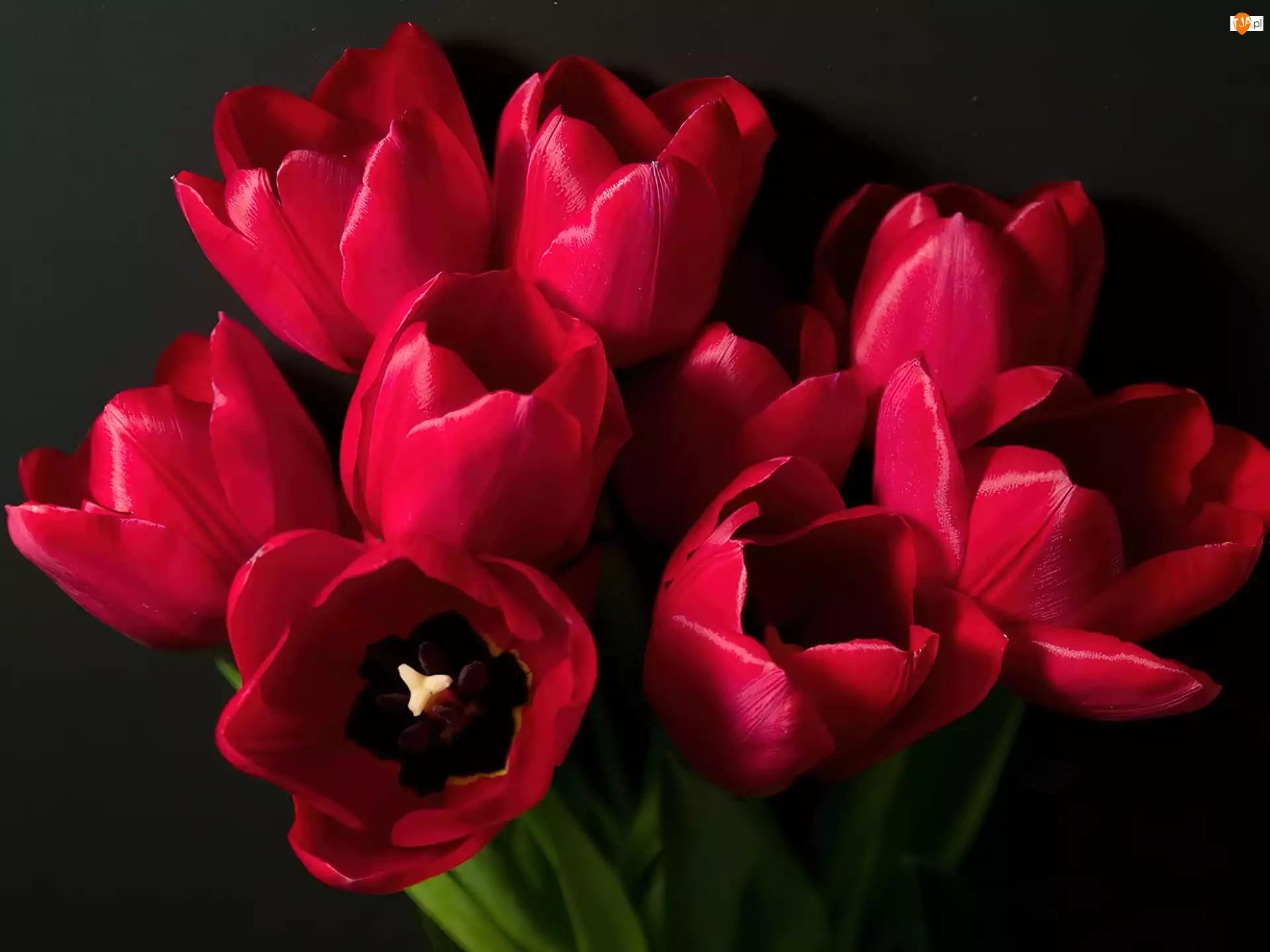 красные тюльпаны на темном фоне