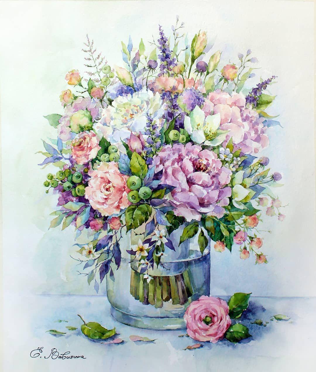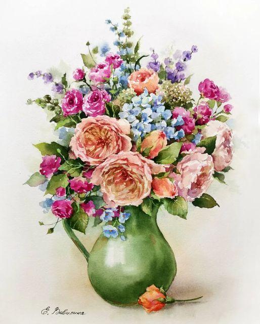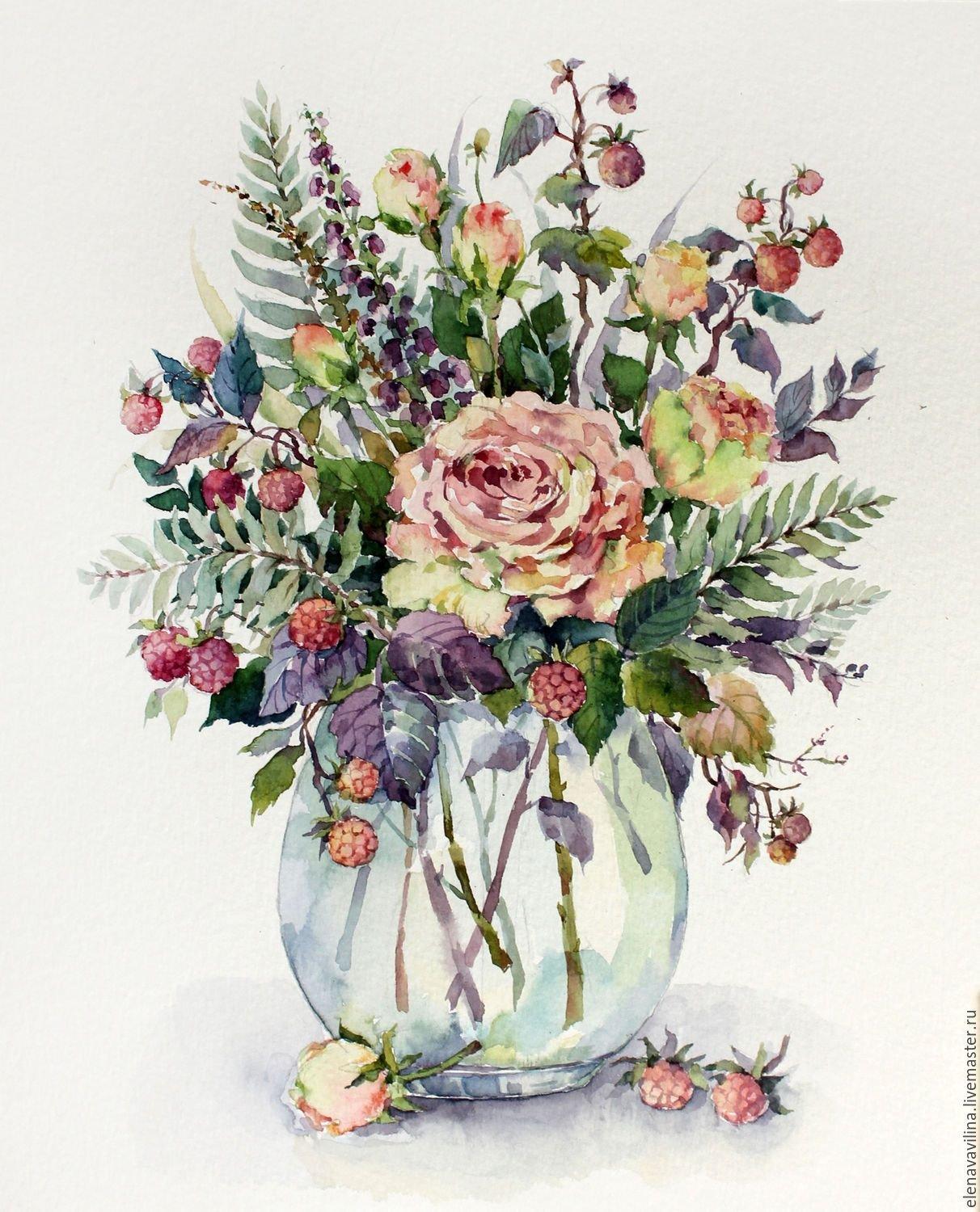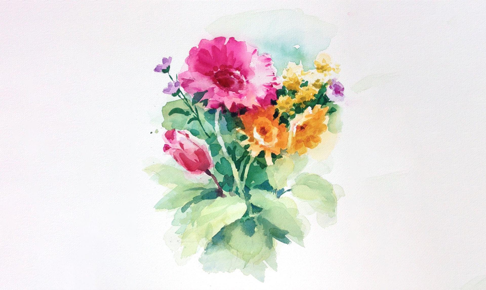 букет цветов акварелью для начинающих