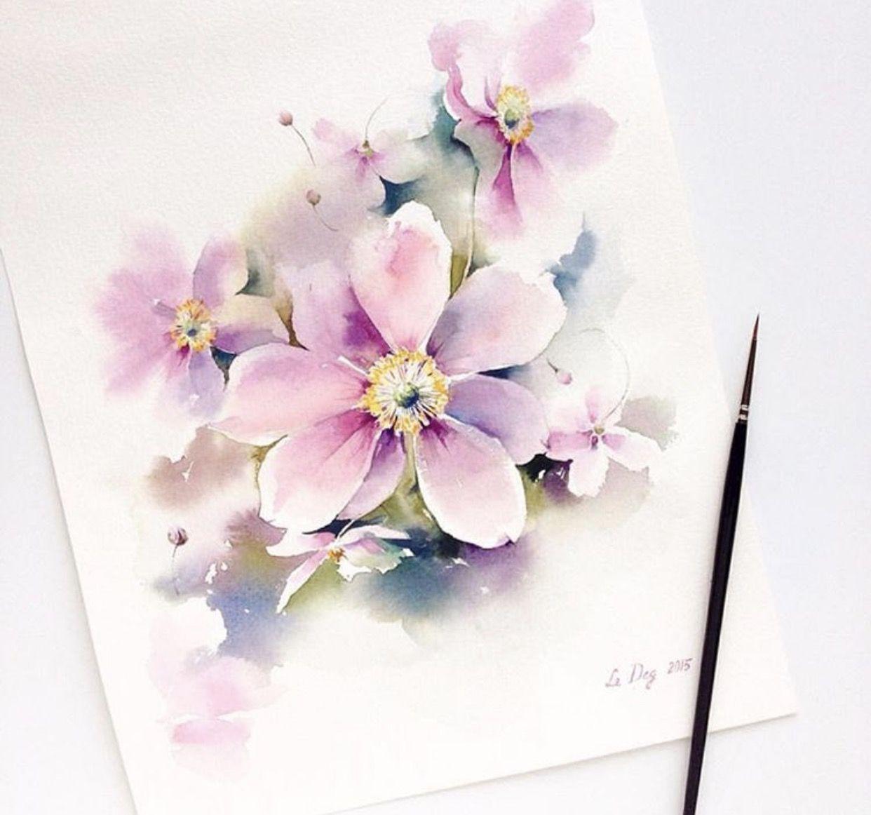 открытки акварелью цветы