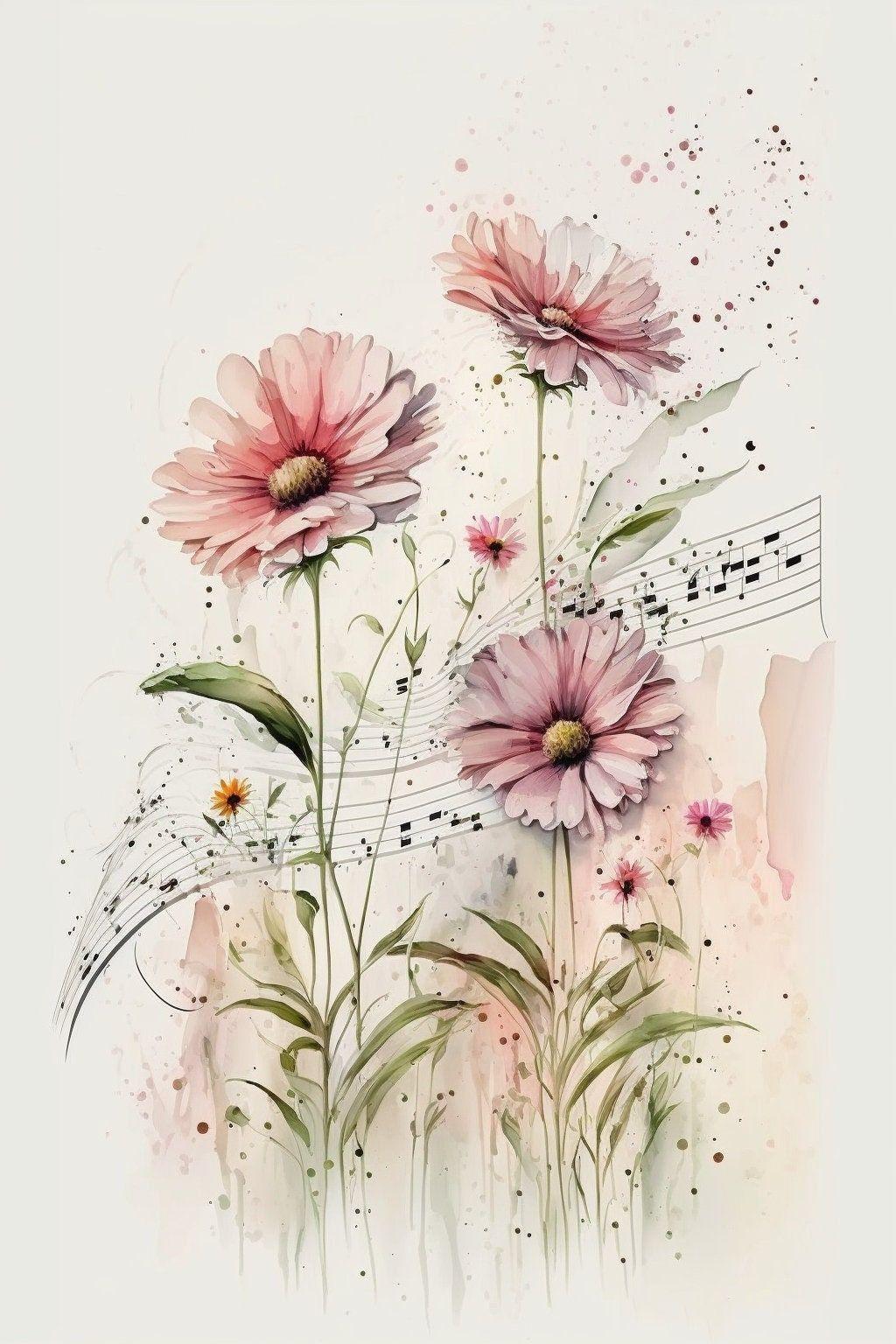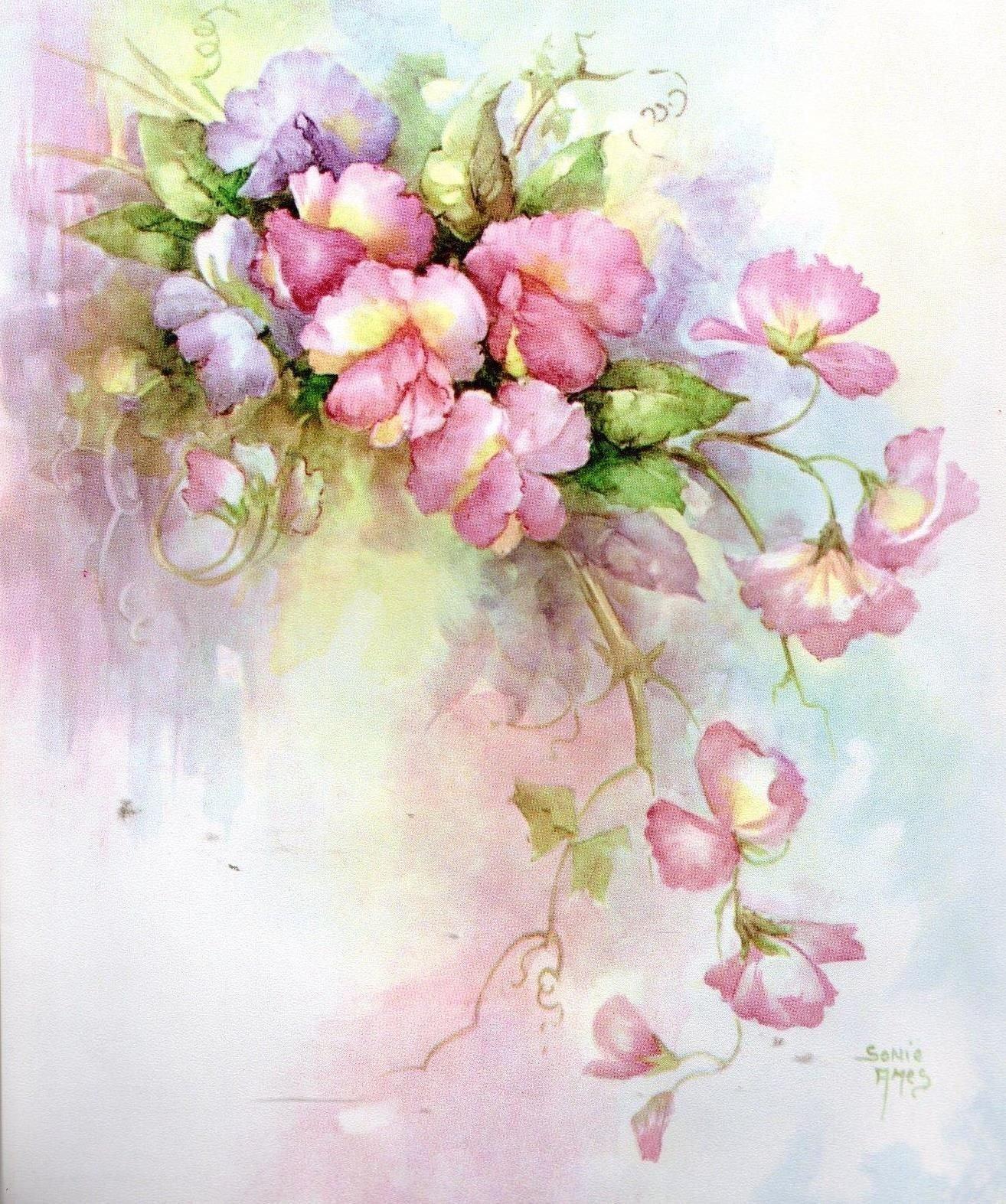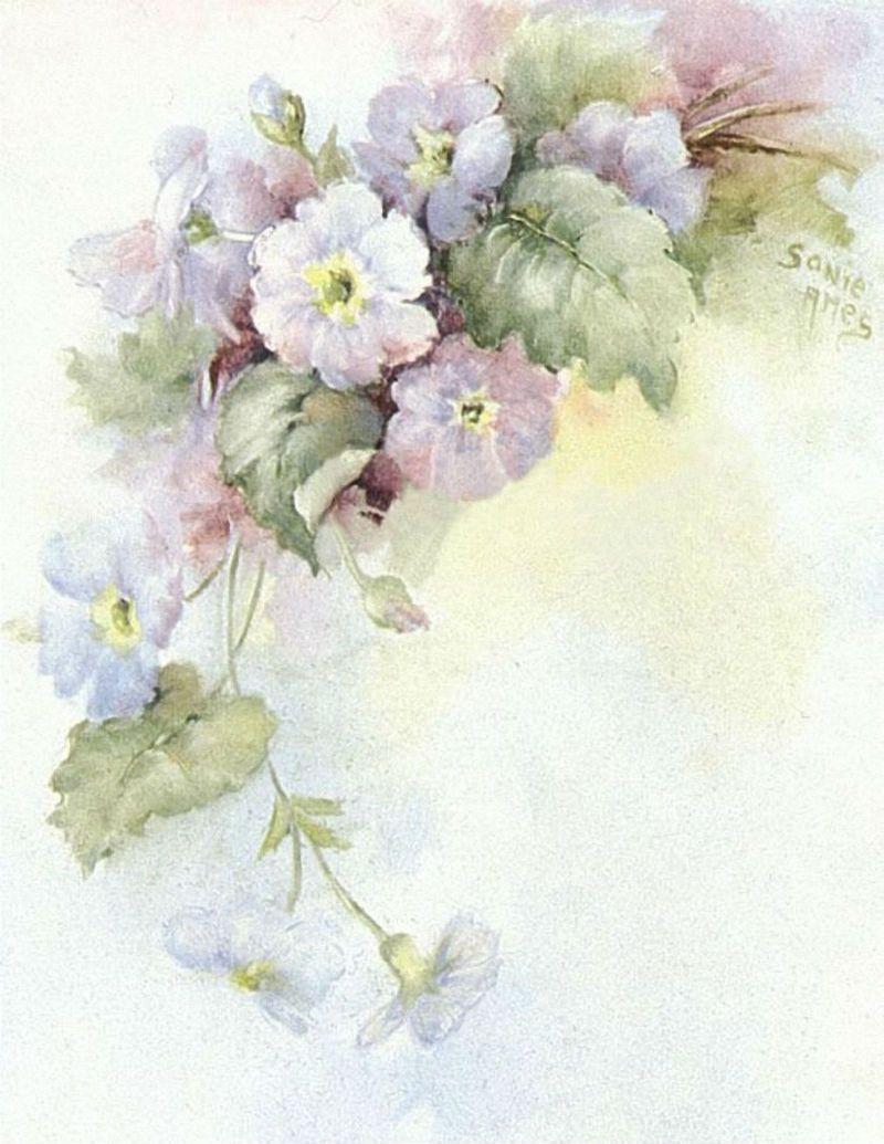С цветами акварель