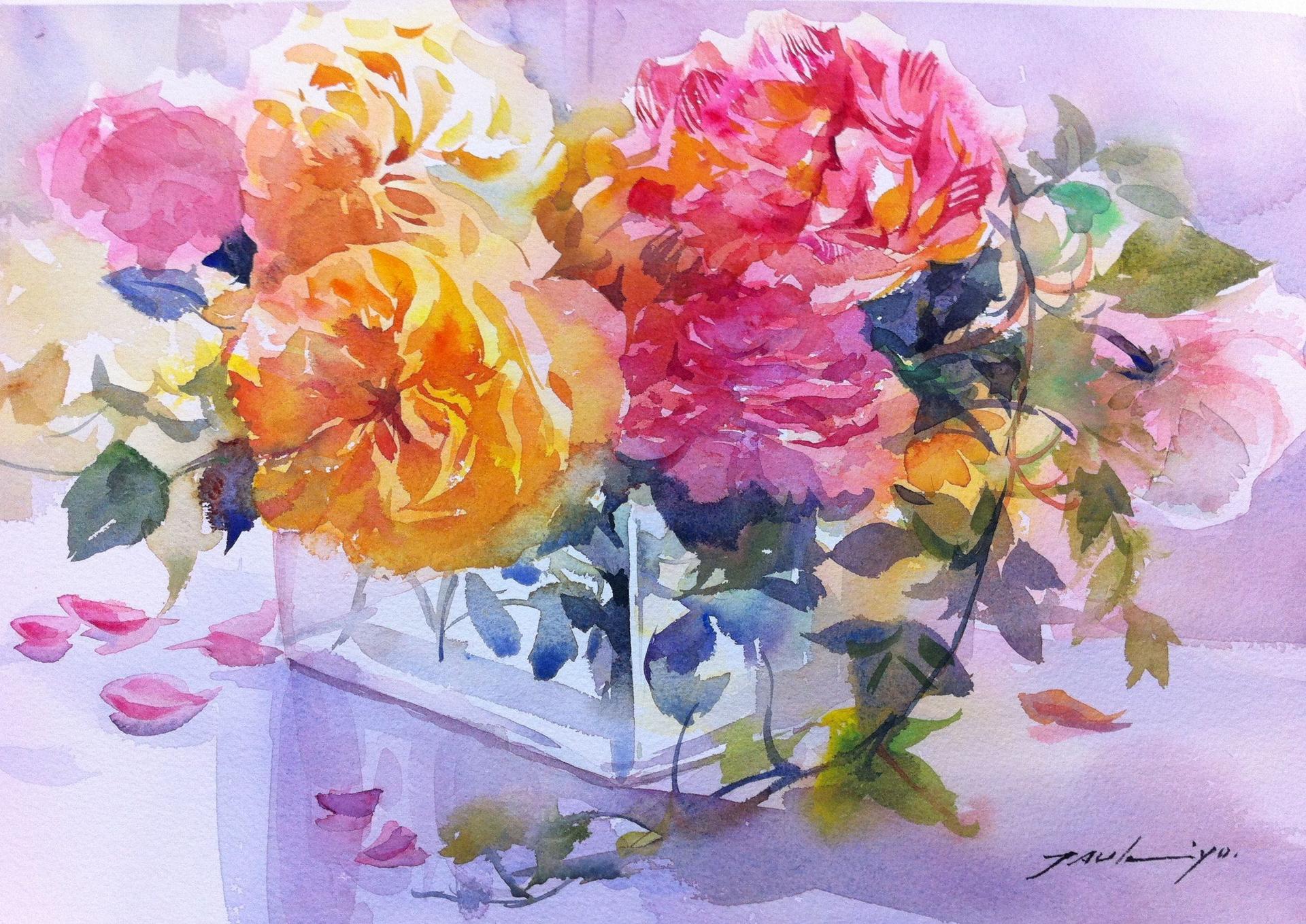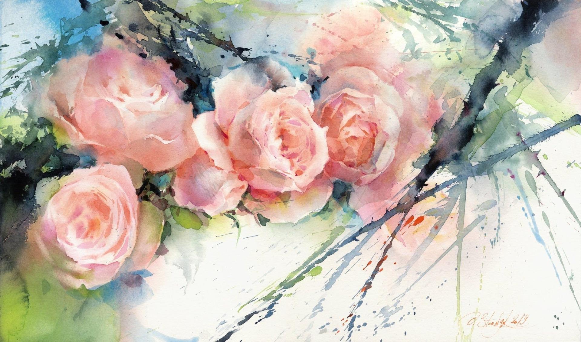 акварельные розы