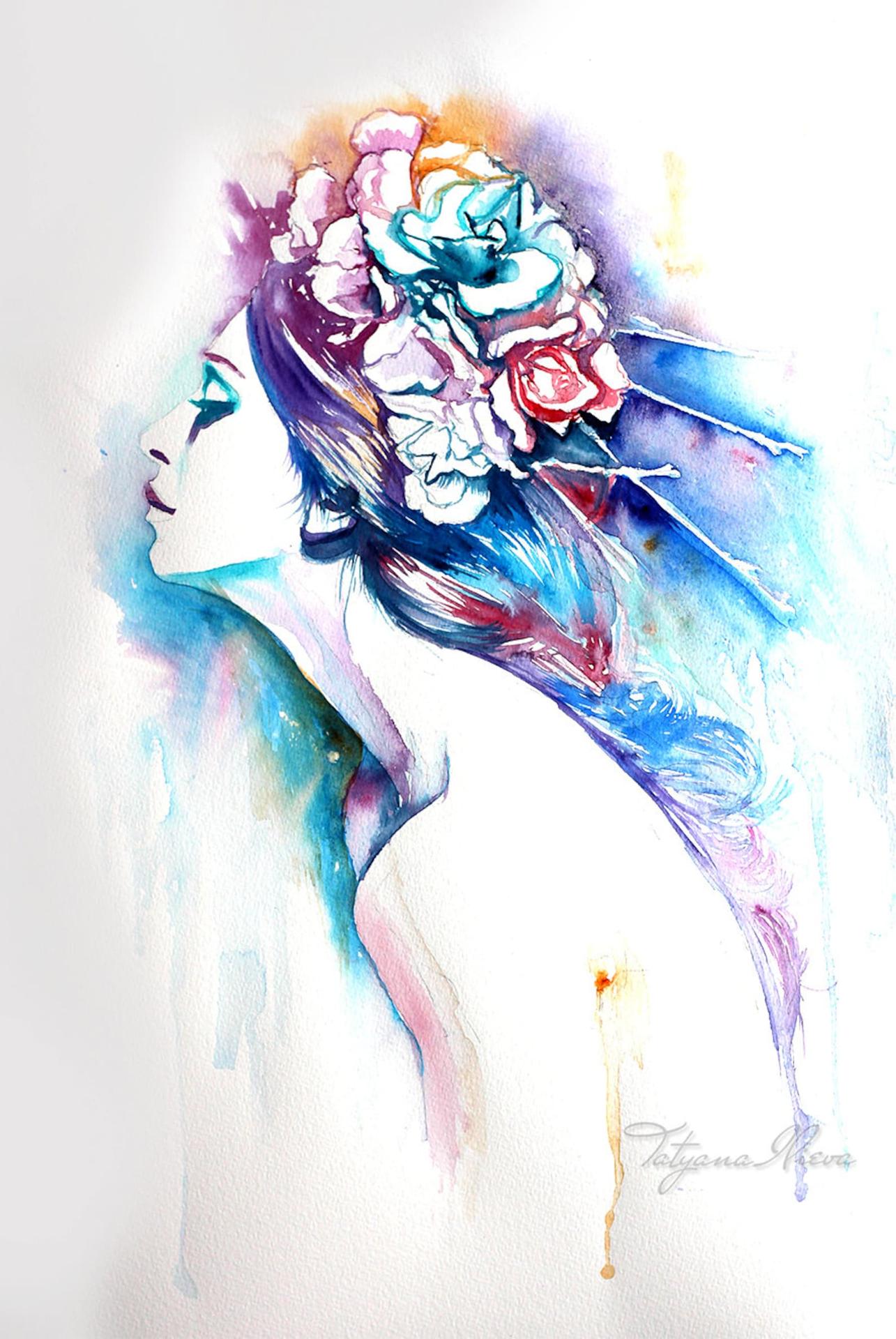 лицо девушки акварелью