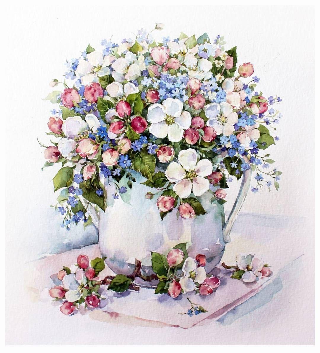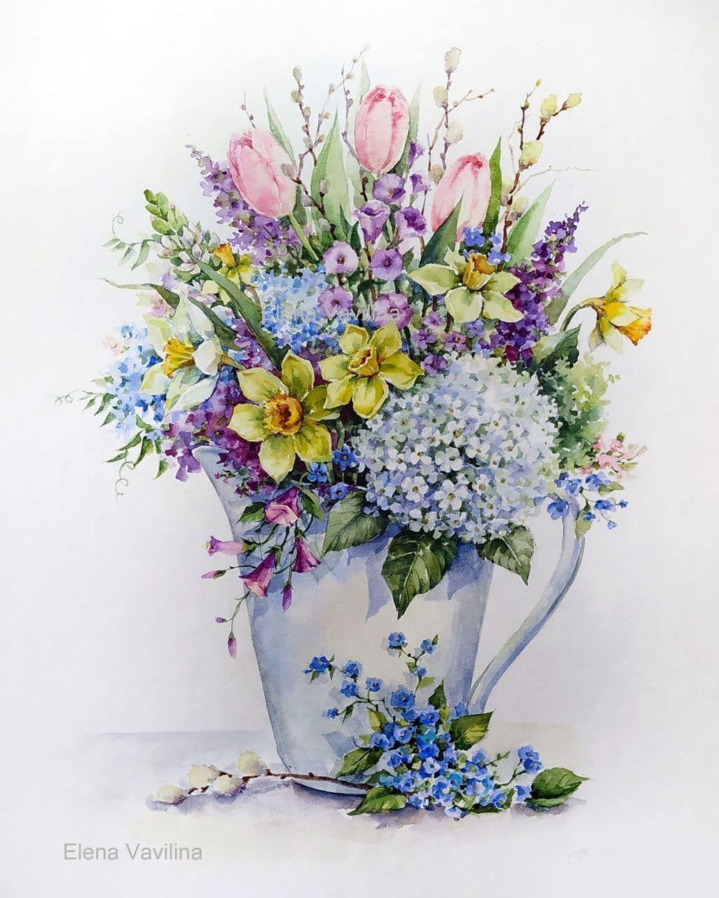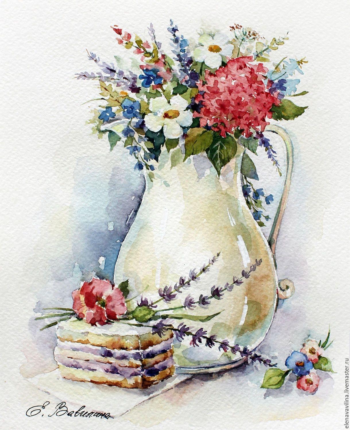 натюрморт с цветами акварелью