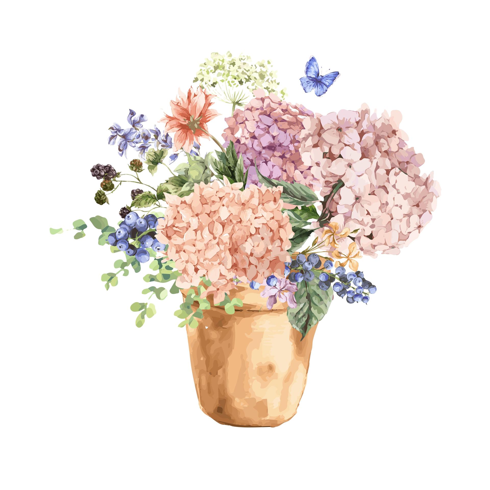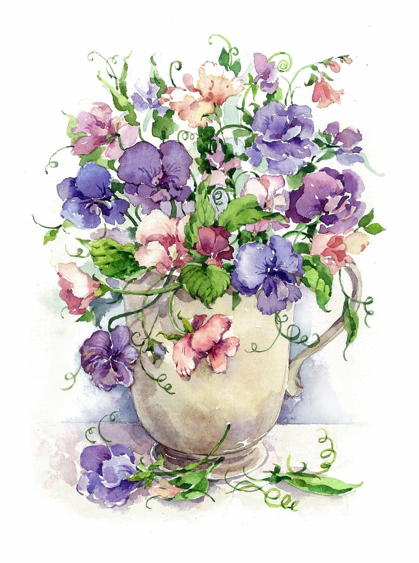 ваза с цветами акварелью