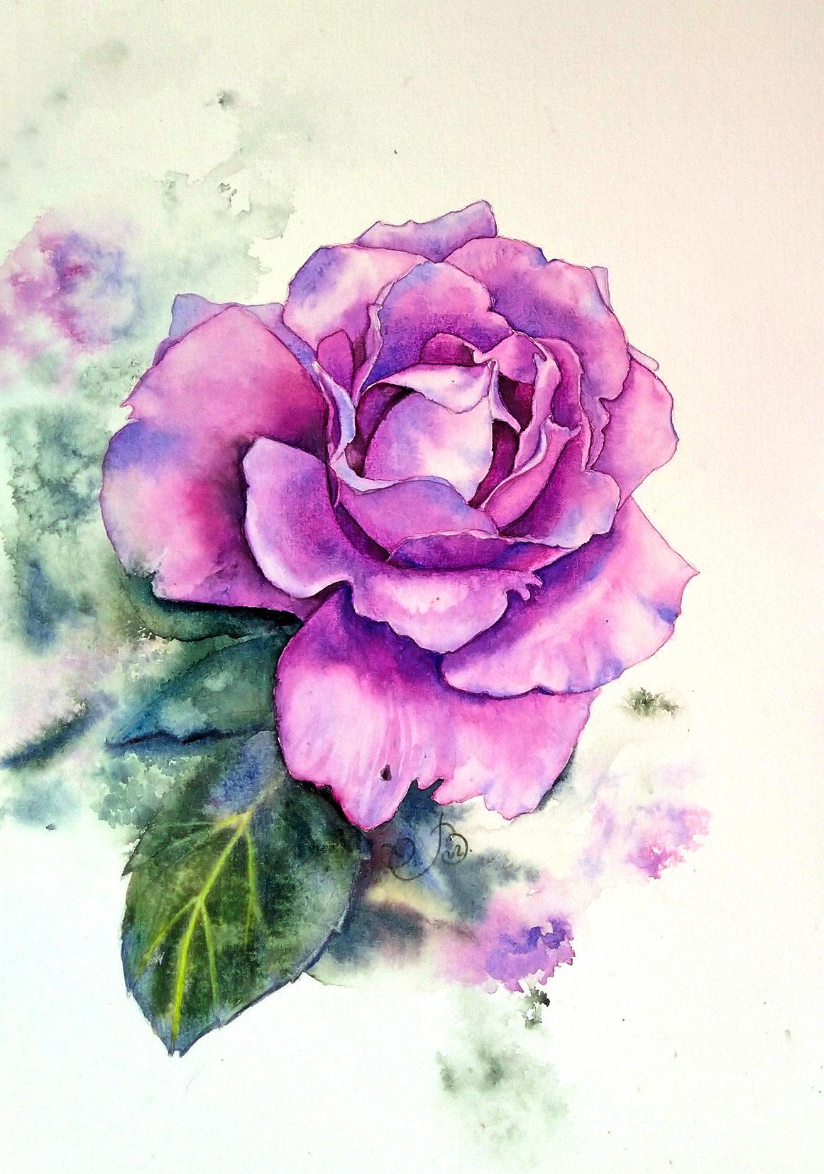 роза акварель