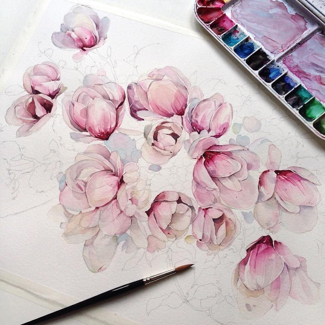 рисование цветов акварелью