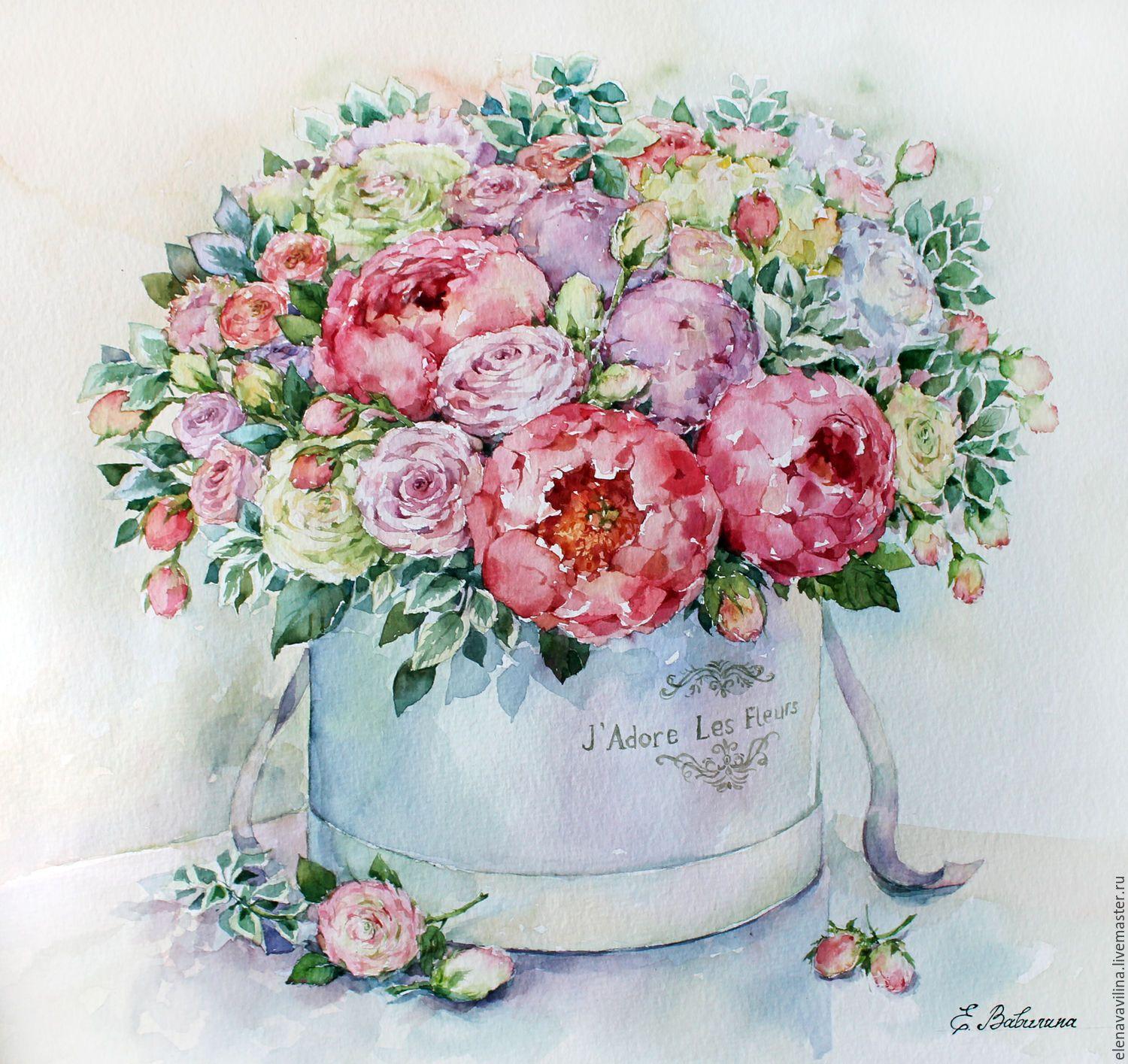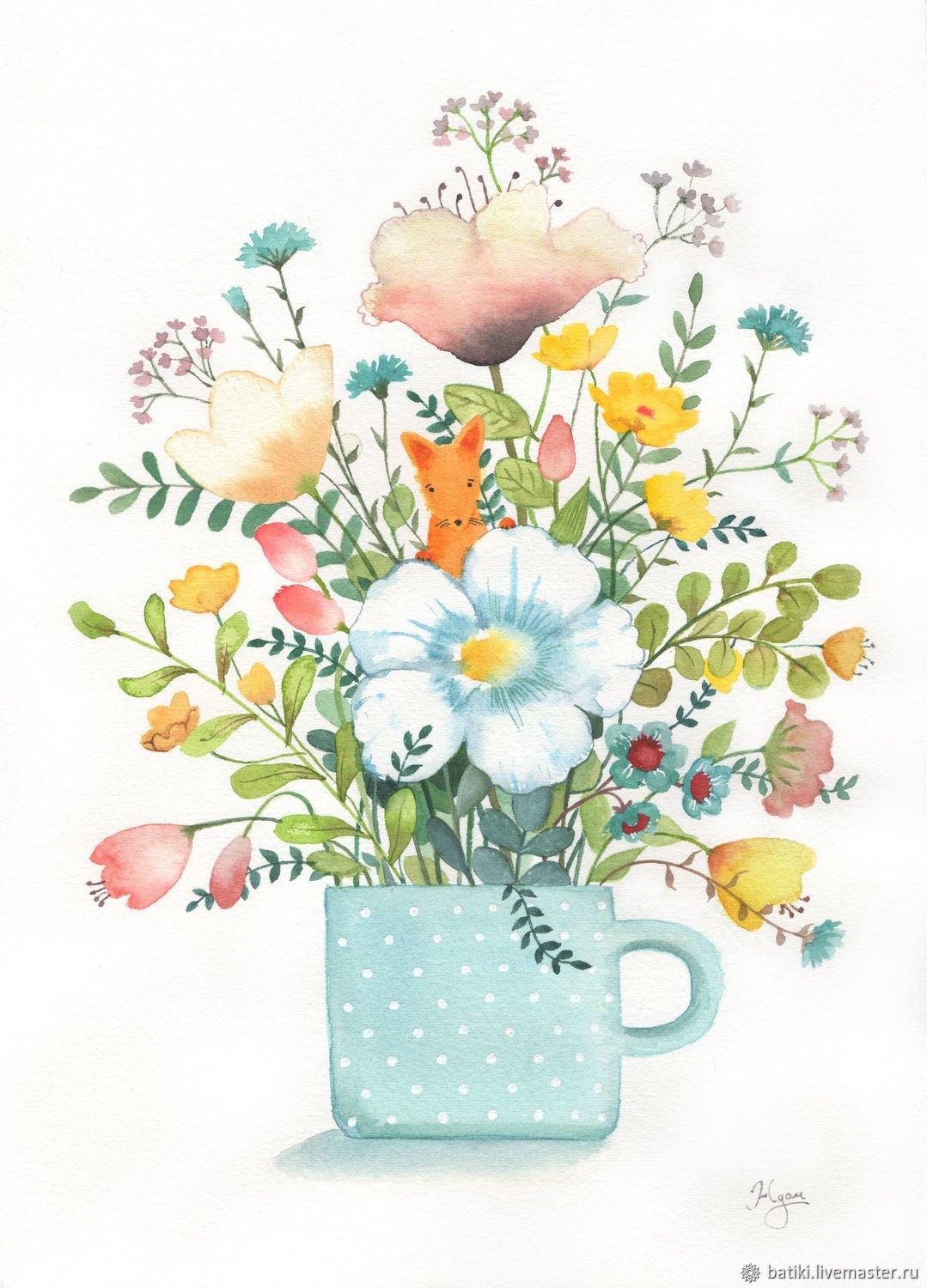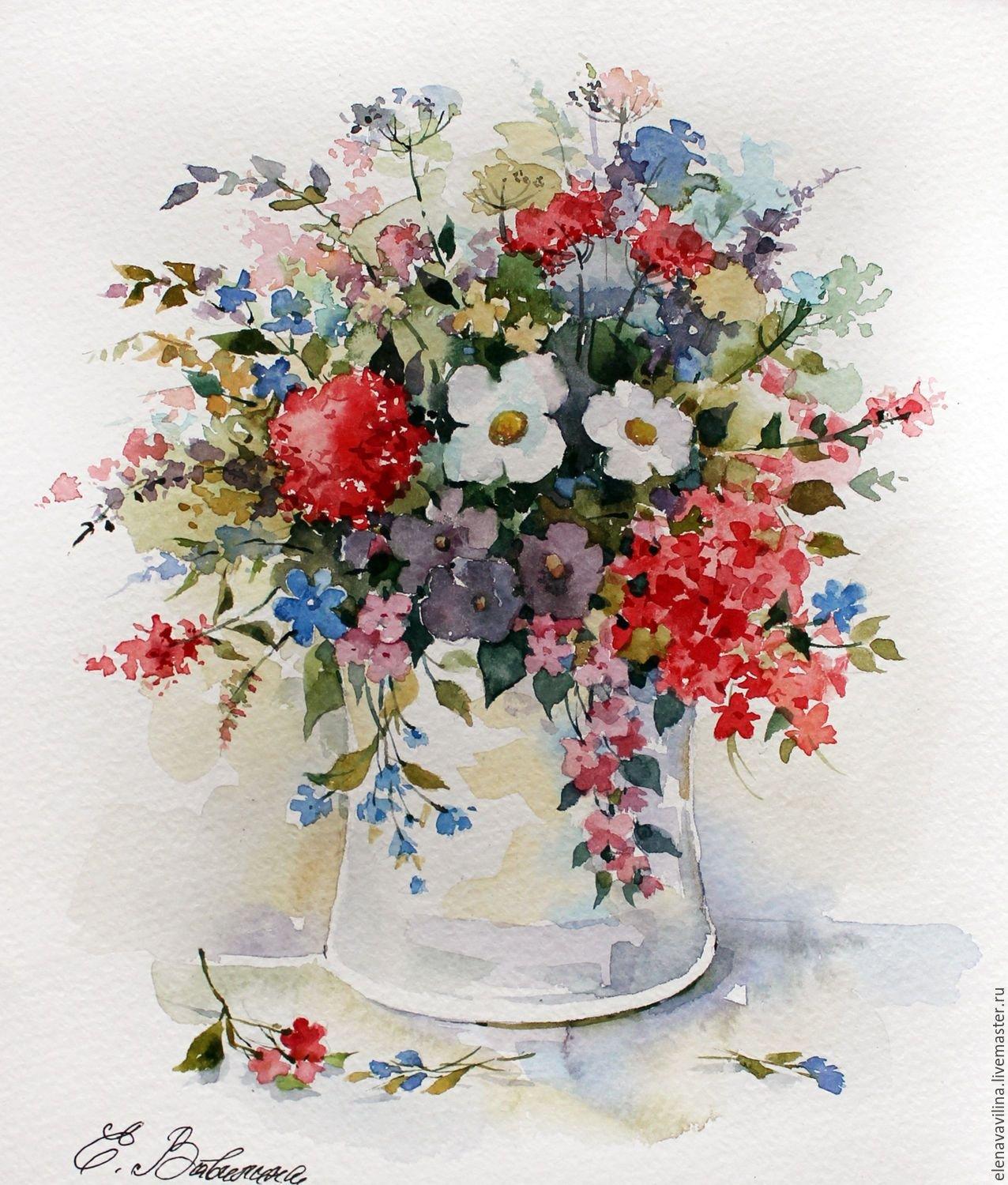 акварельные букеты цветов
