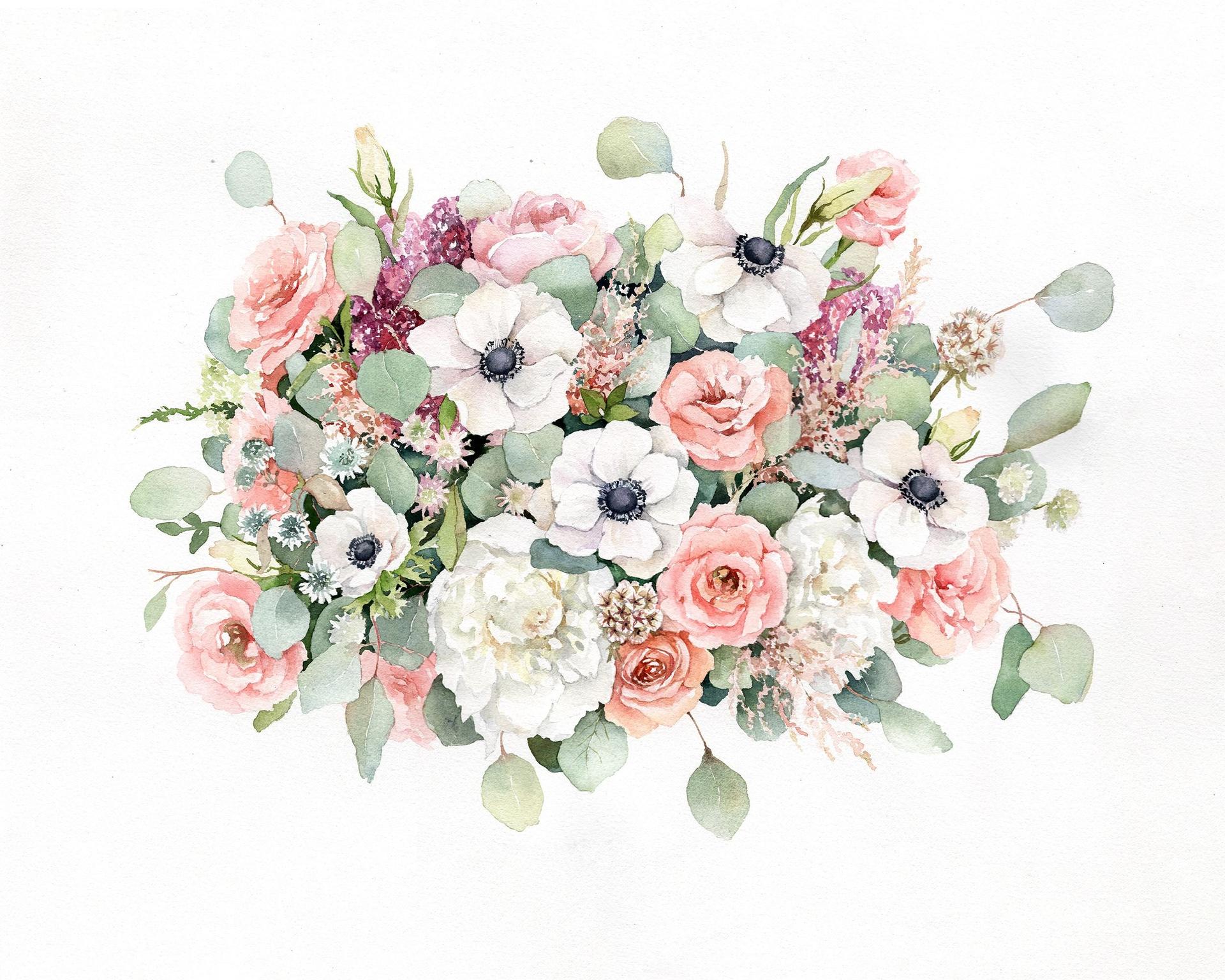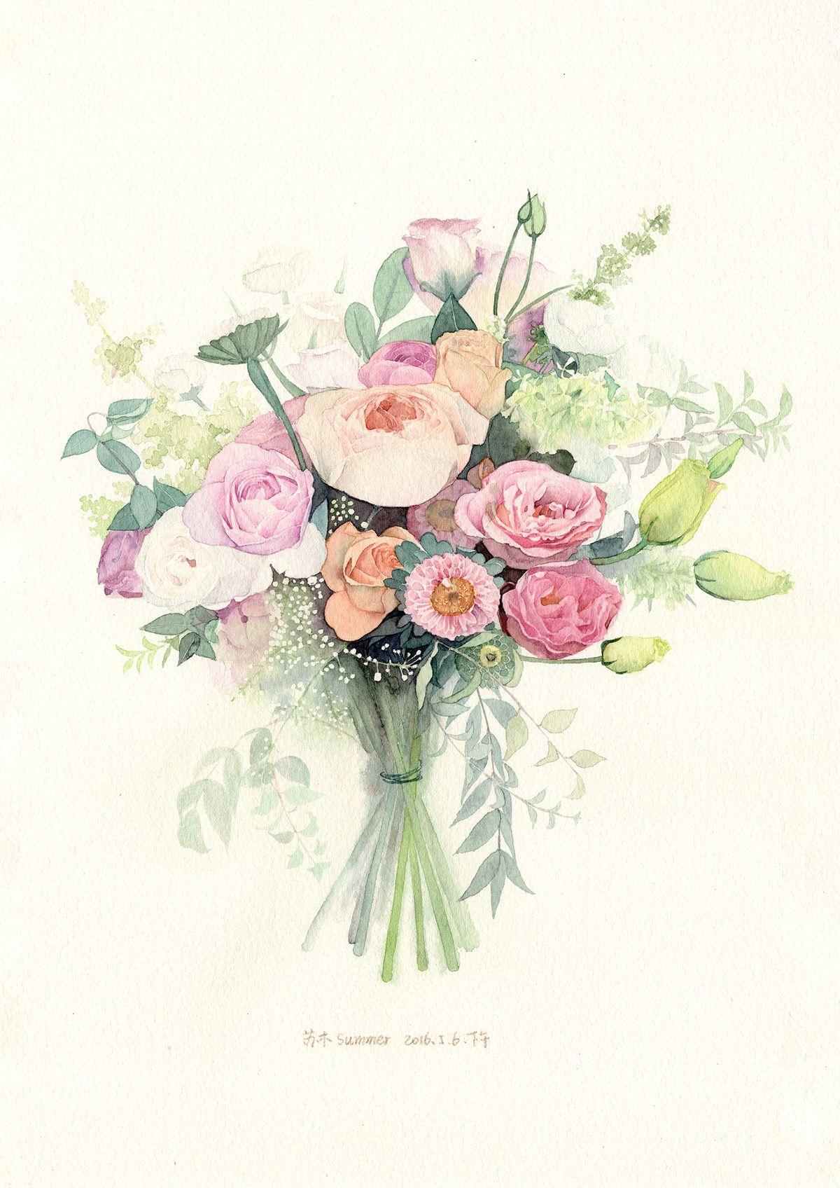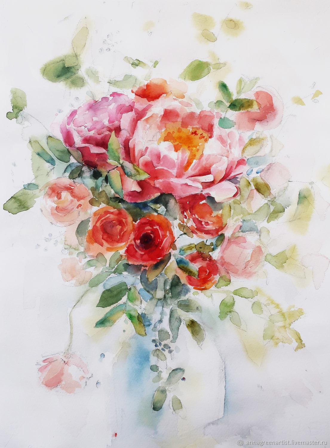 акварельные букеты цветов