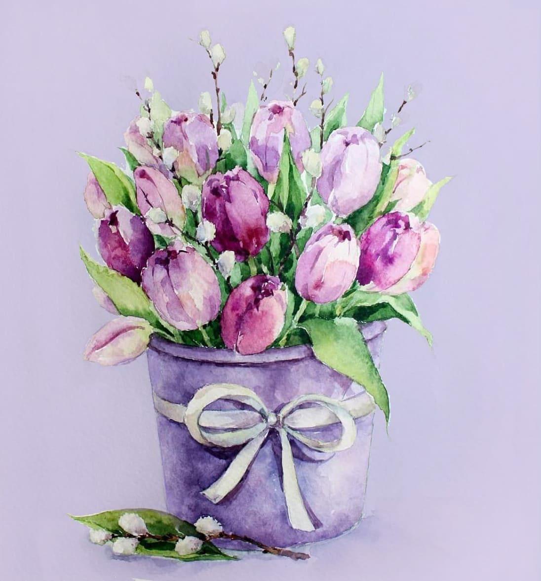 анастасия беседина тюльпаны акварелью