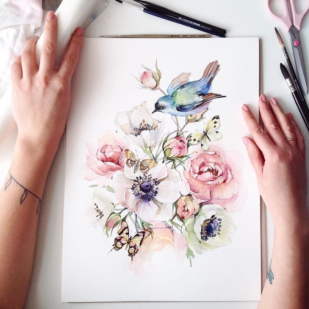 флористика акварелью