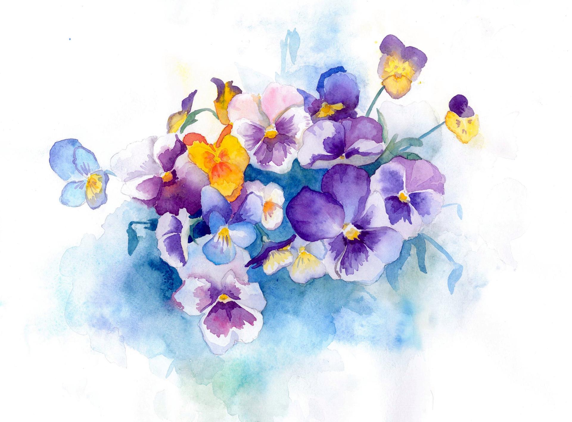 анютины глазки рисунок акварелью