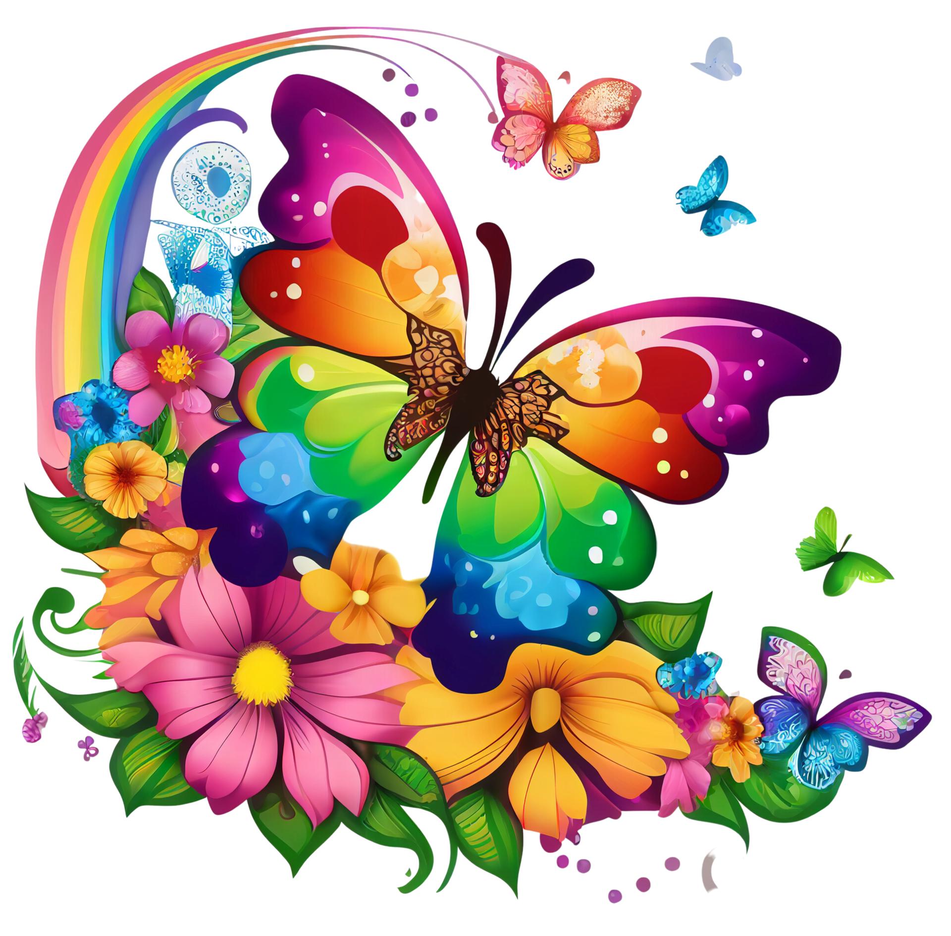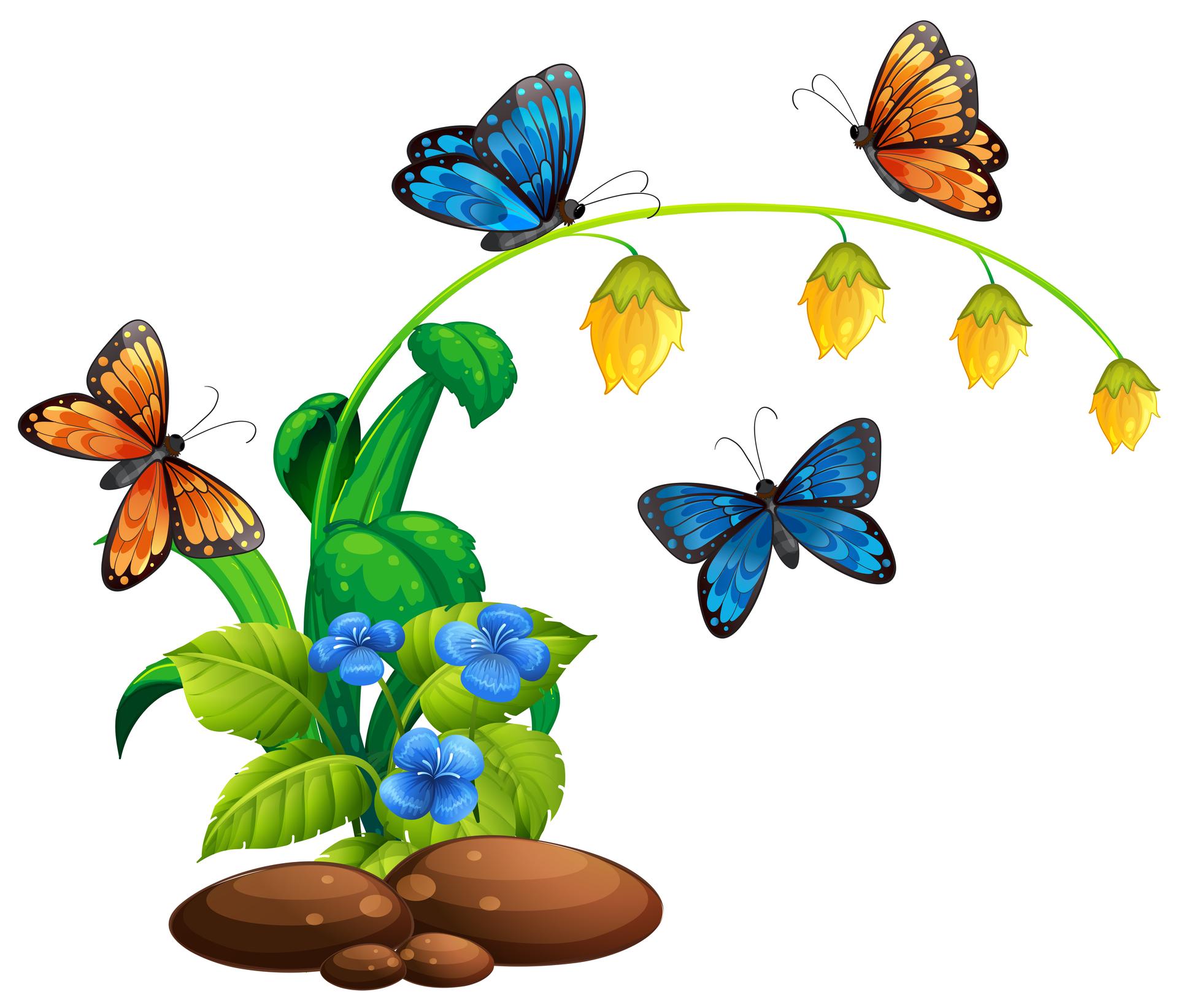 цветочки с бабочками без фона