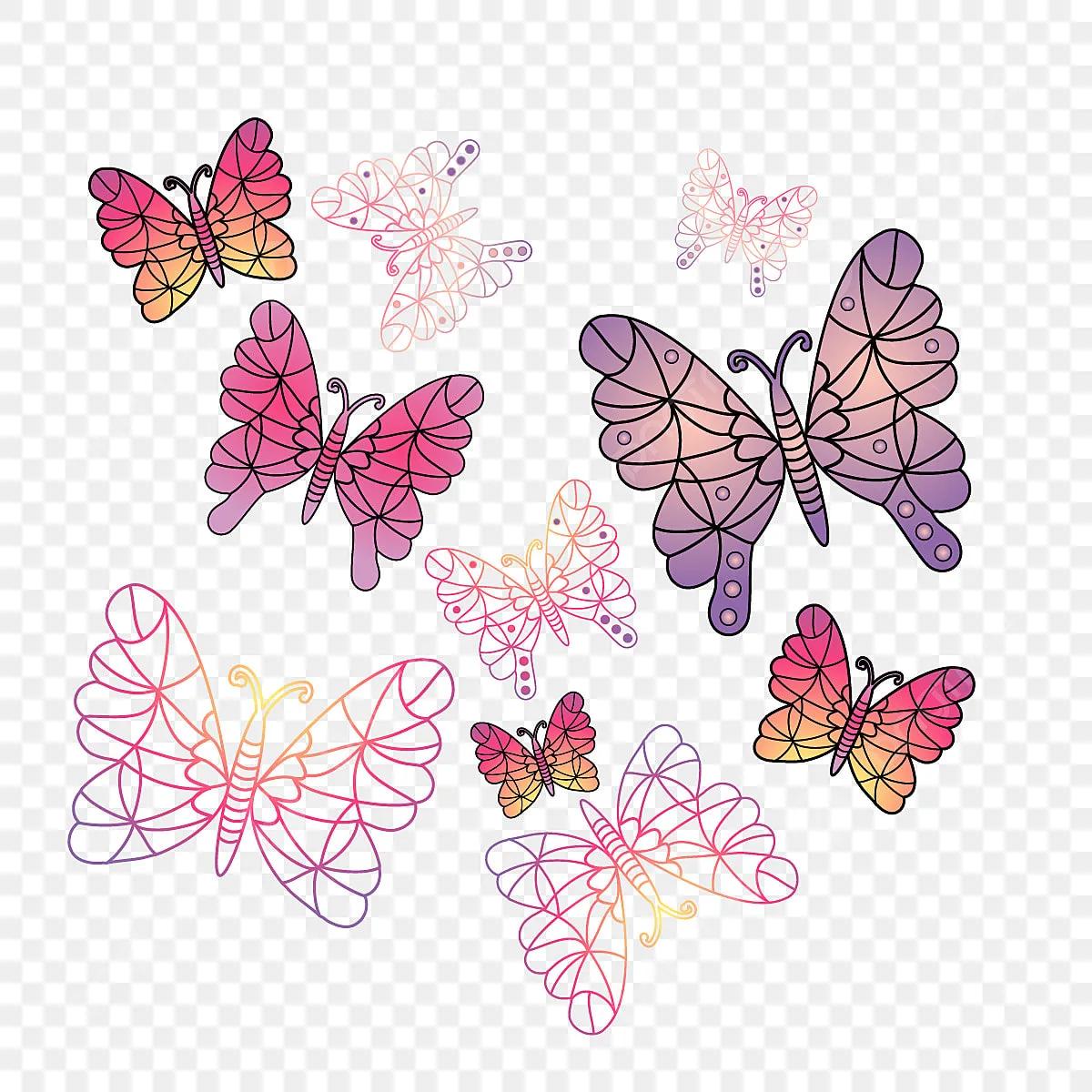 мультяшные бабочки на прозрачном фоне