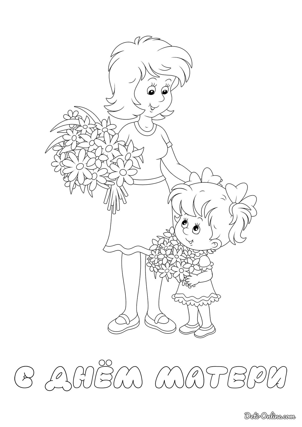 открытка для мамы раскраска