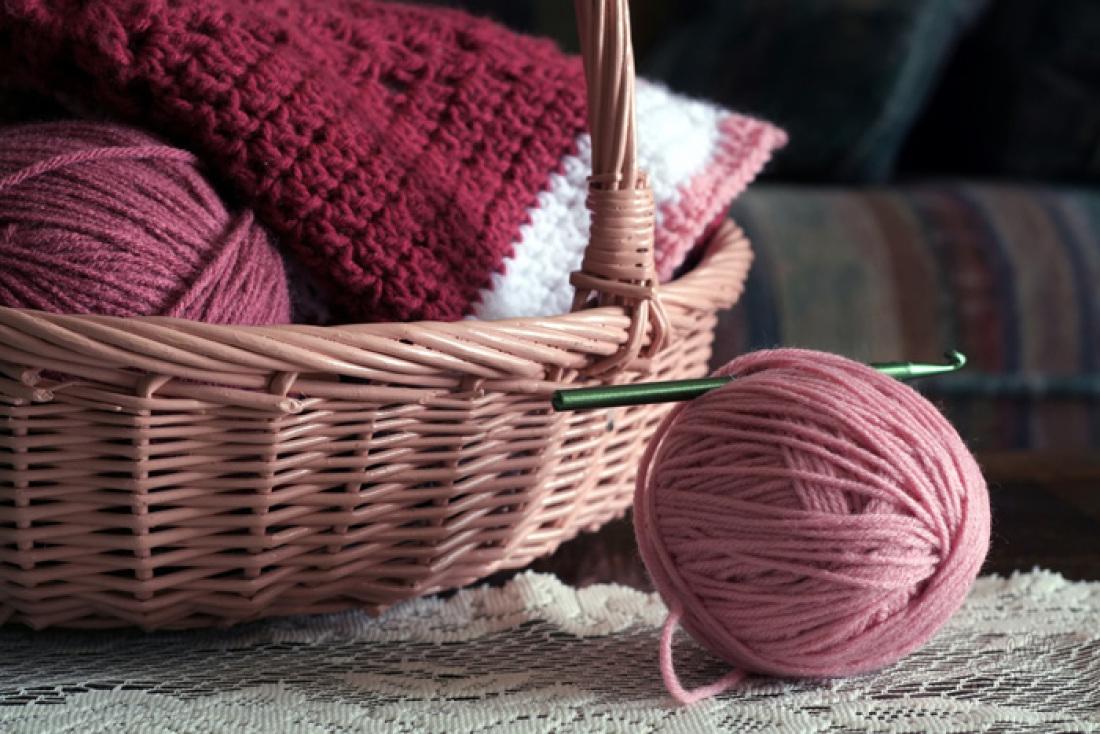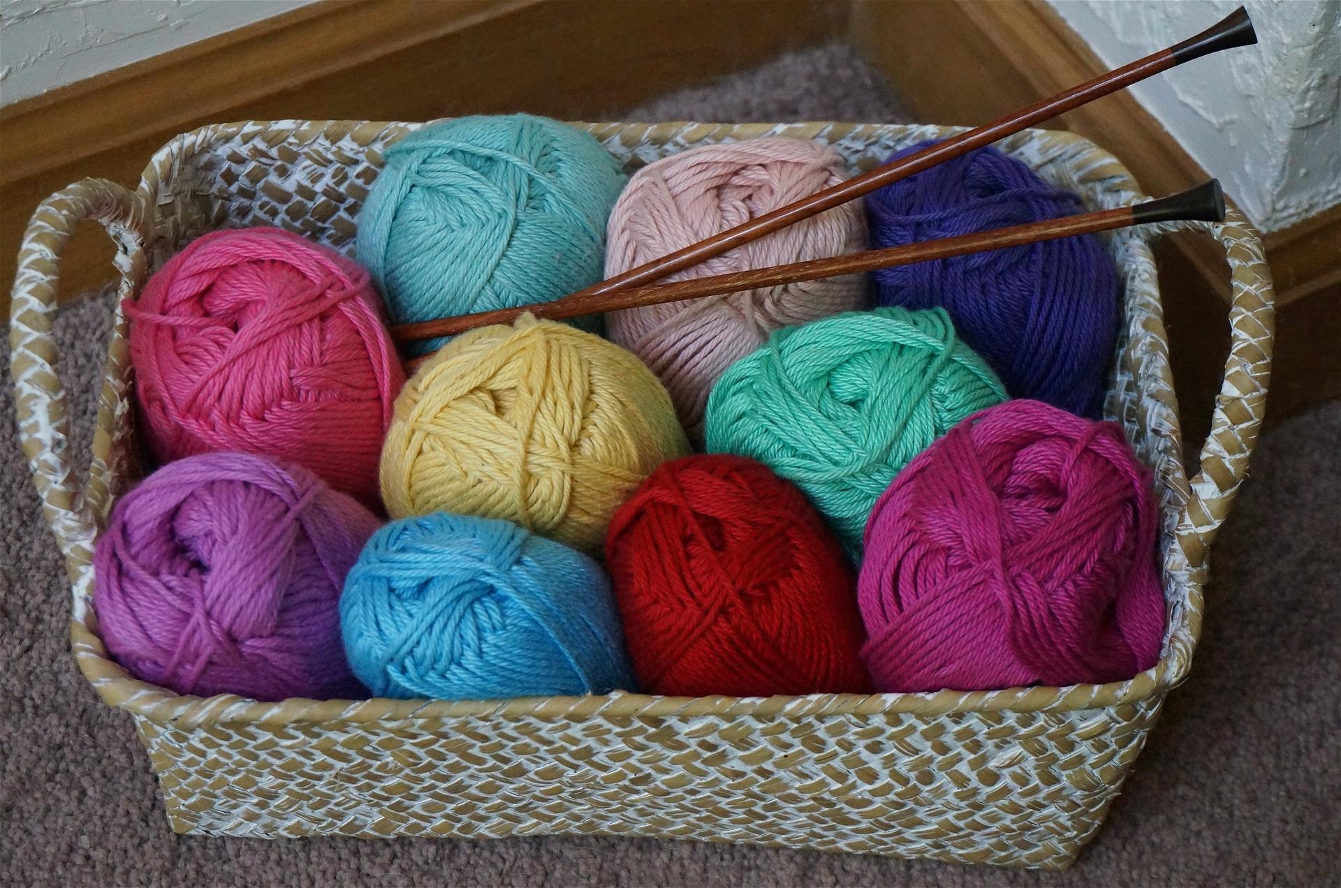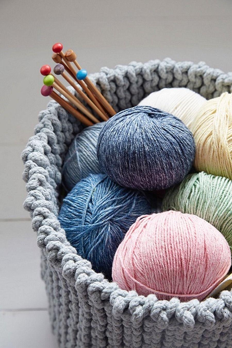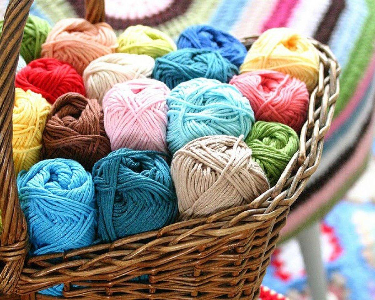 корзина с клубками пряжи