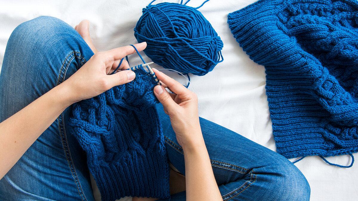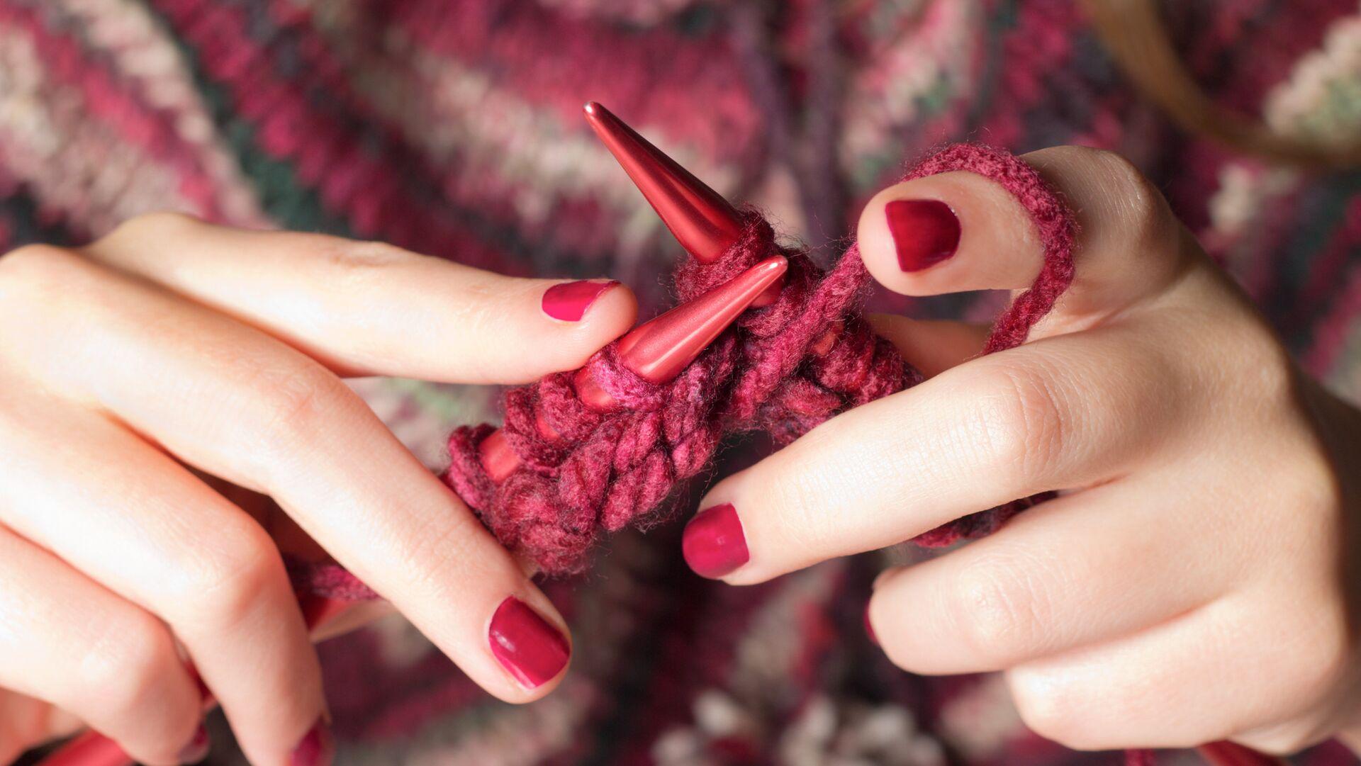 девушка вяжет спицами