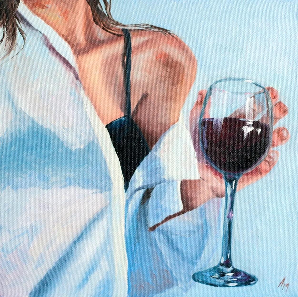 картина женщина с бокалом