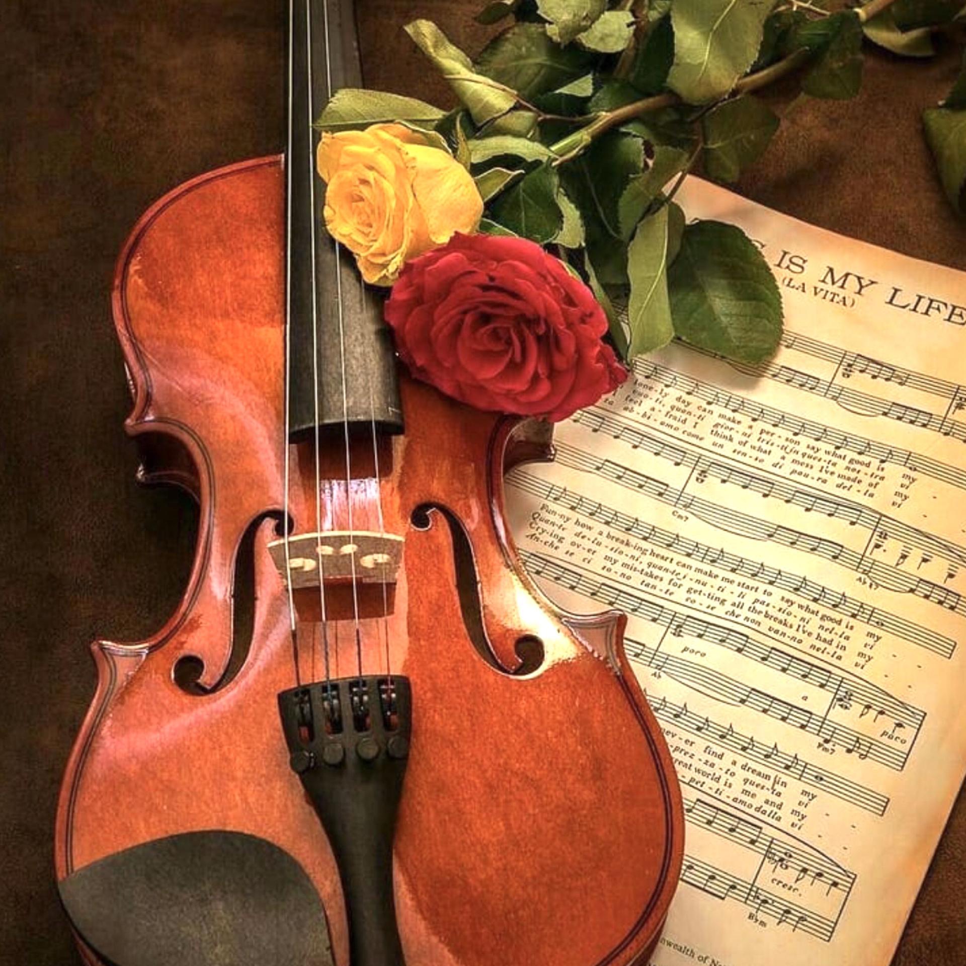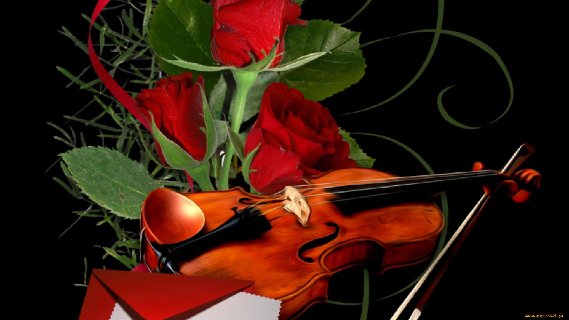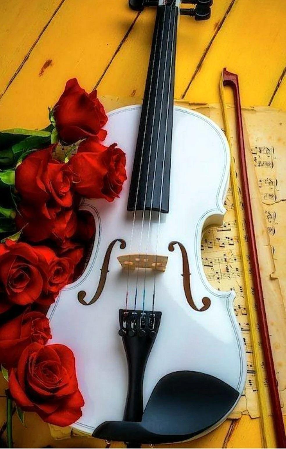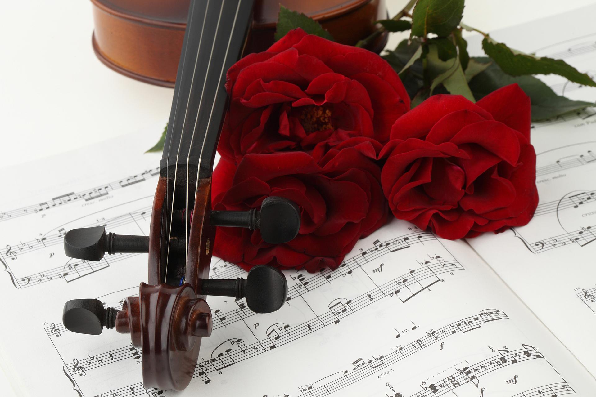 розы и музыкальные инструменты