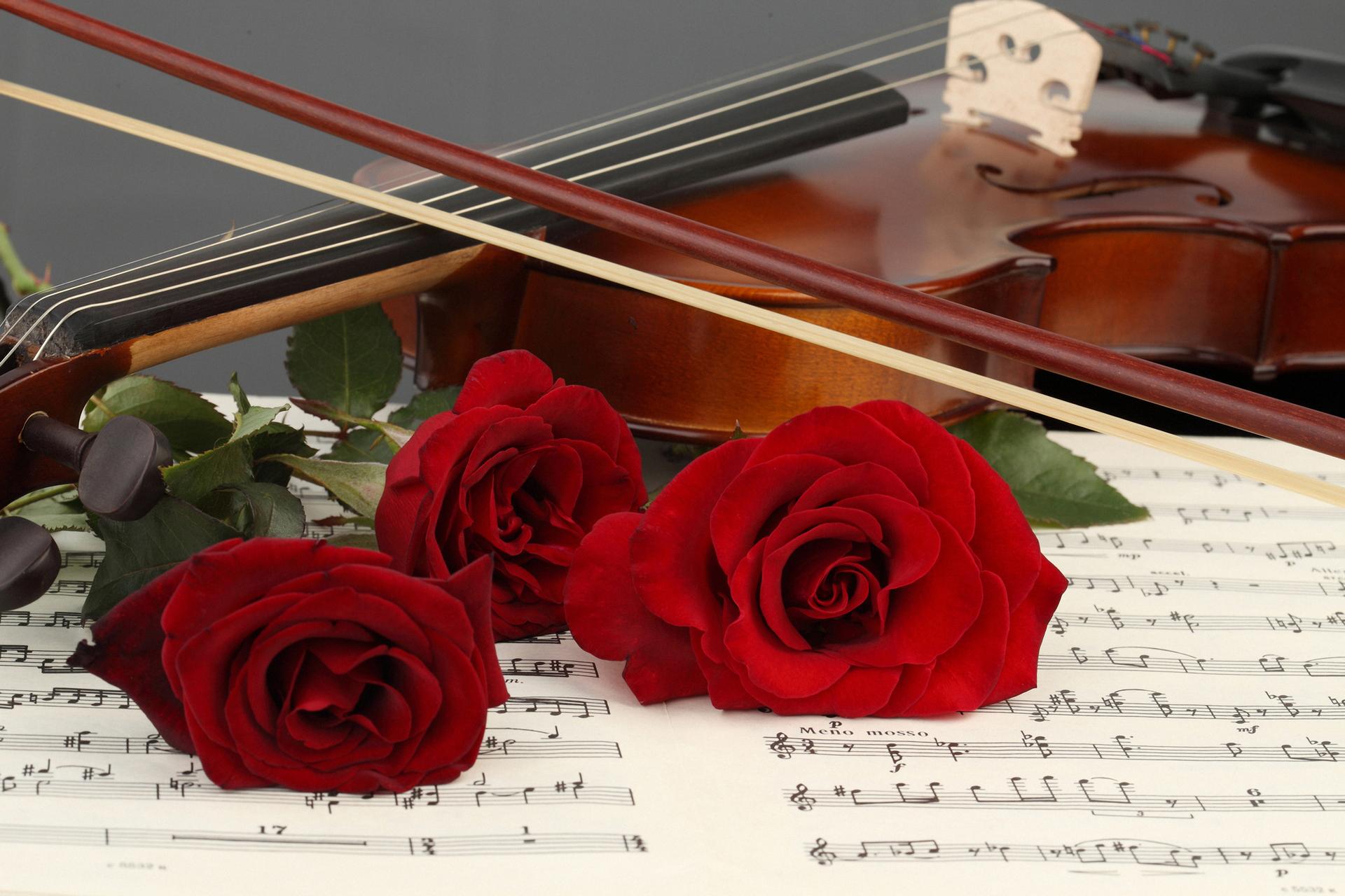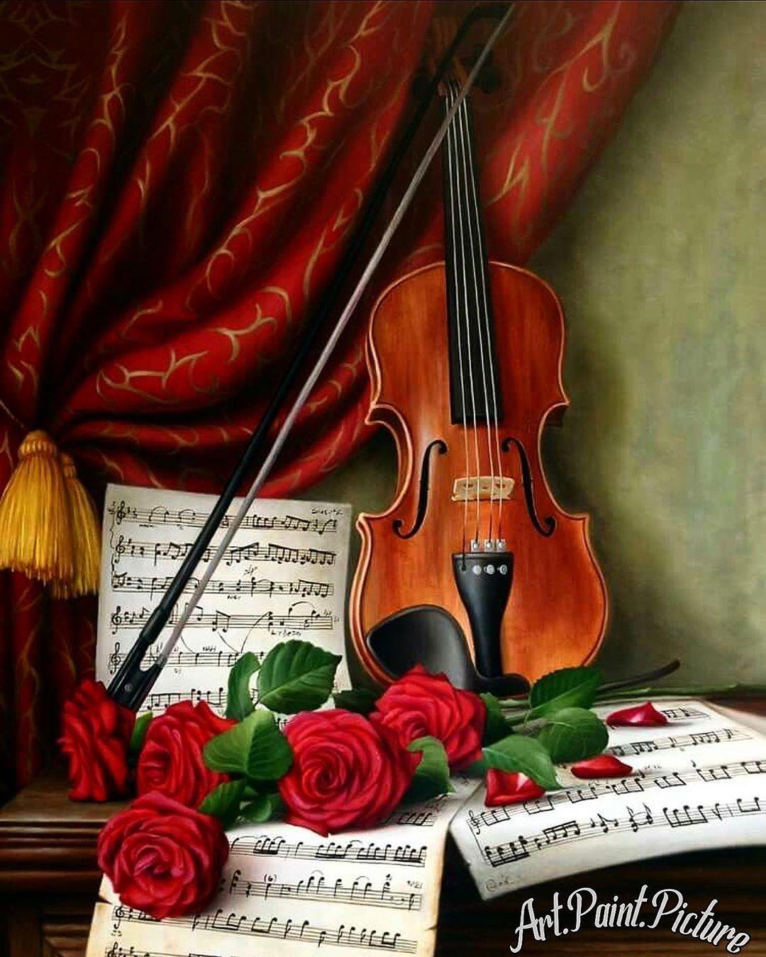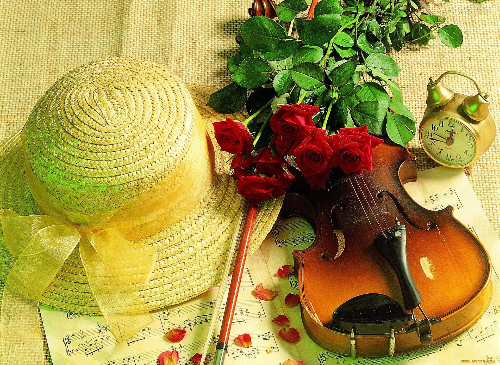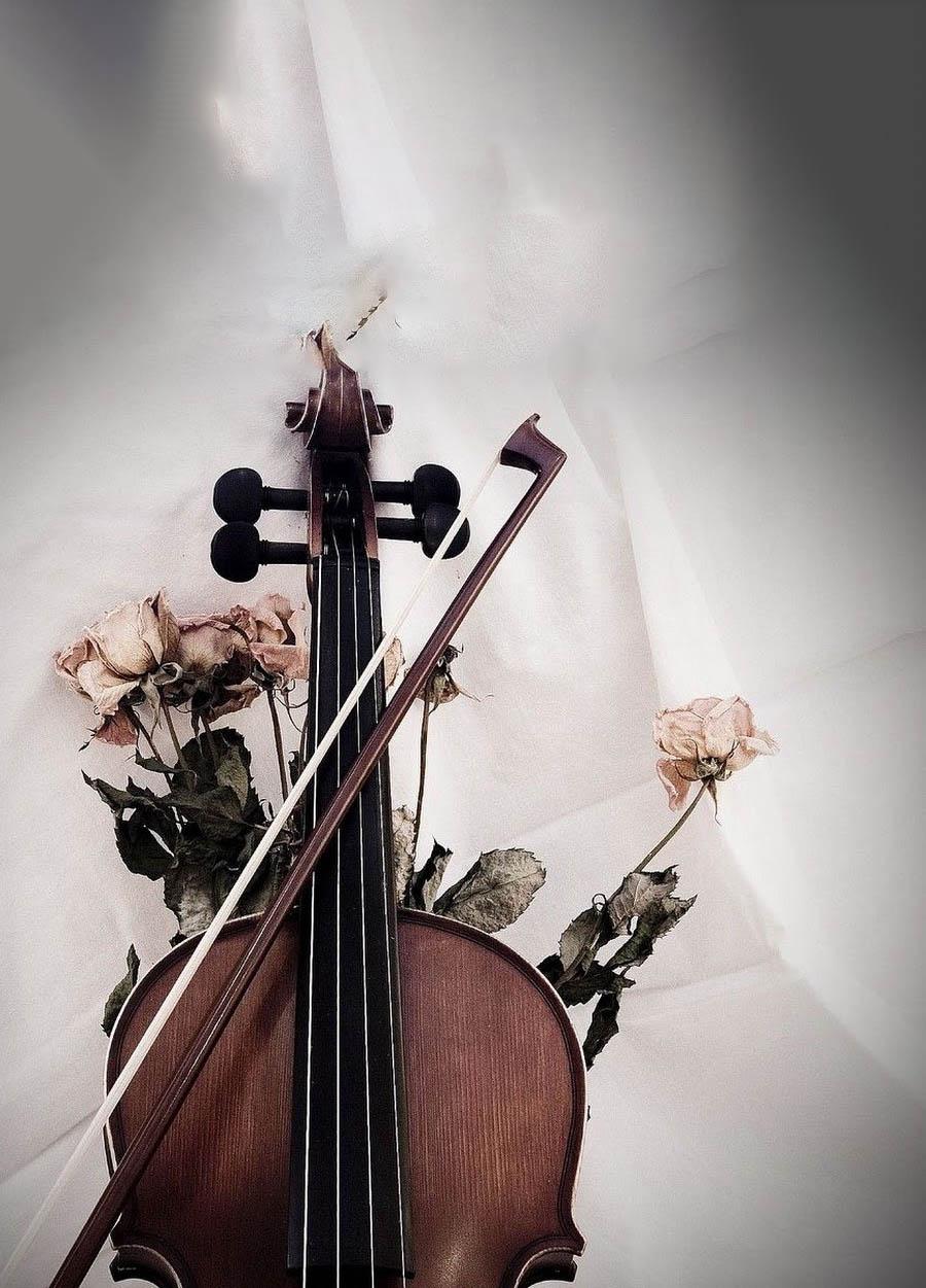 розы и музыкальные инструменты