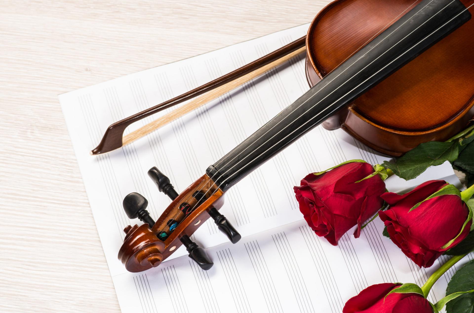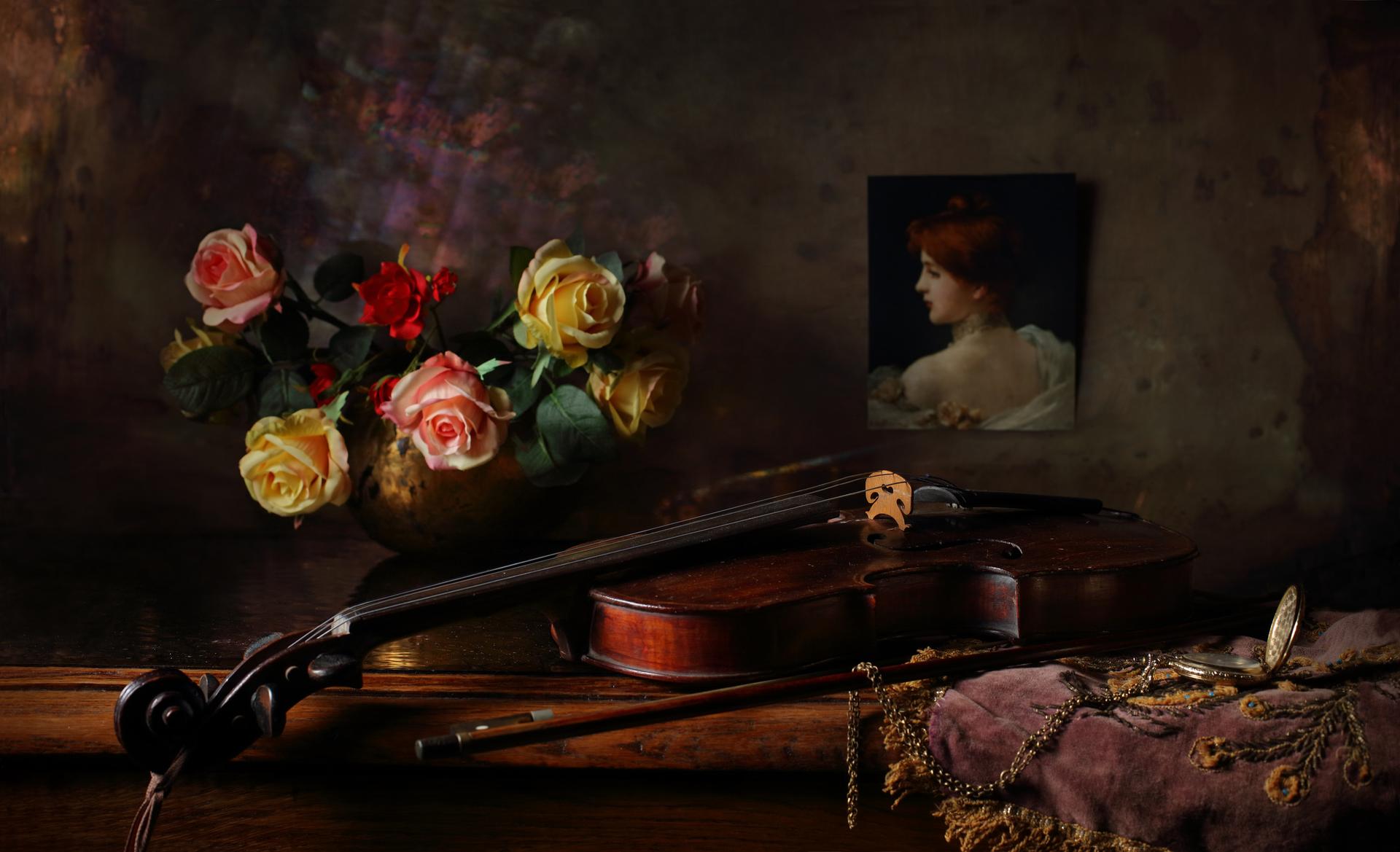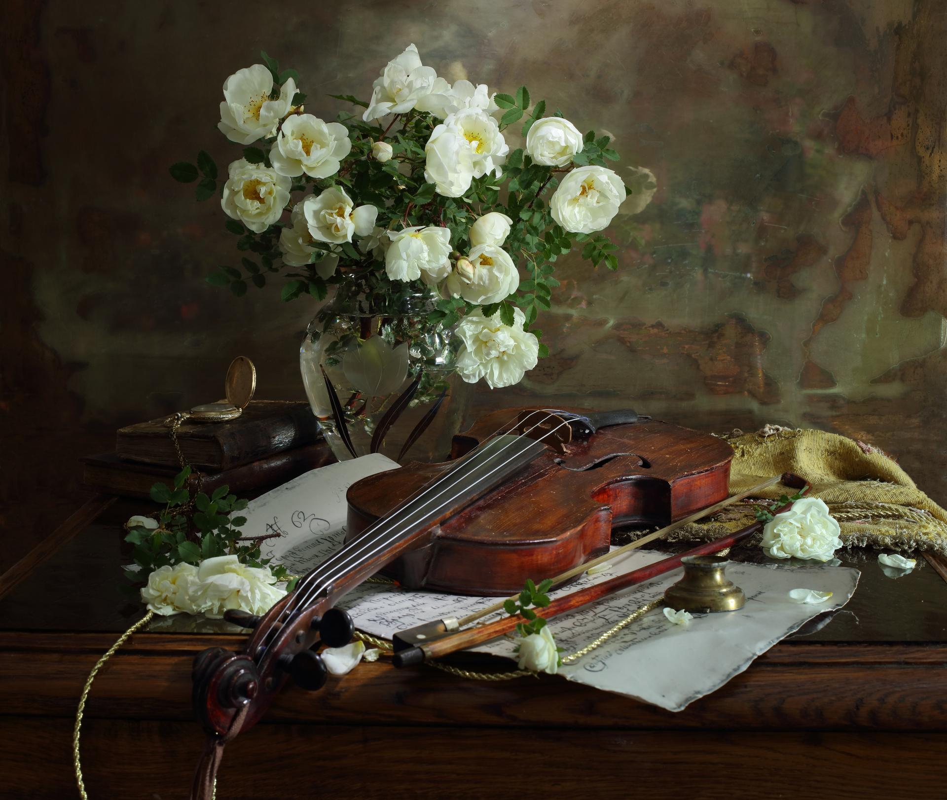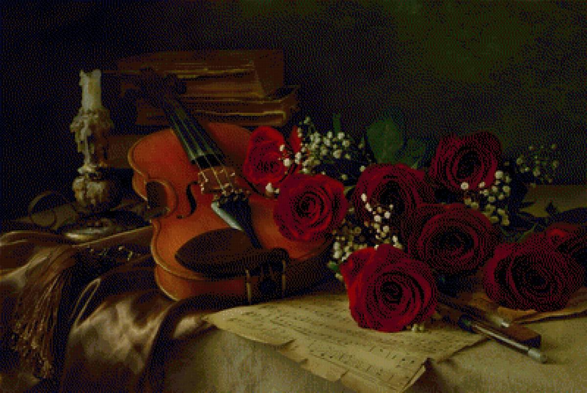 розы и музыкальные инструменты