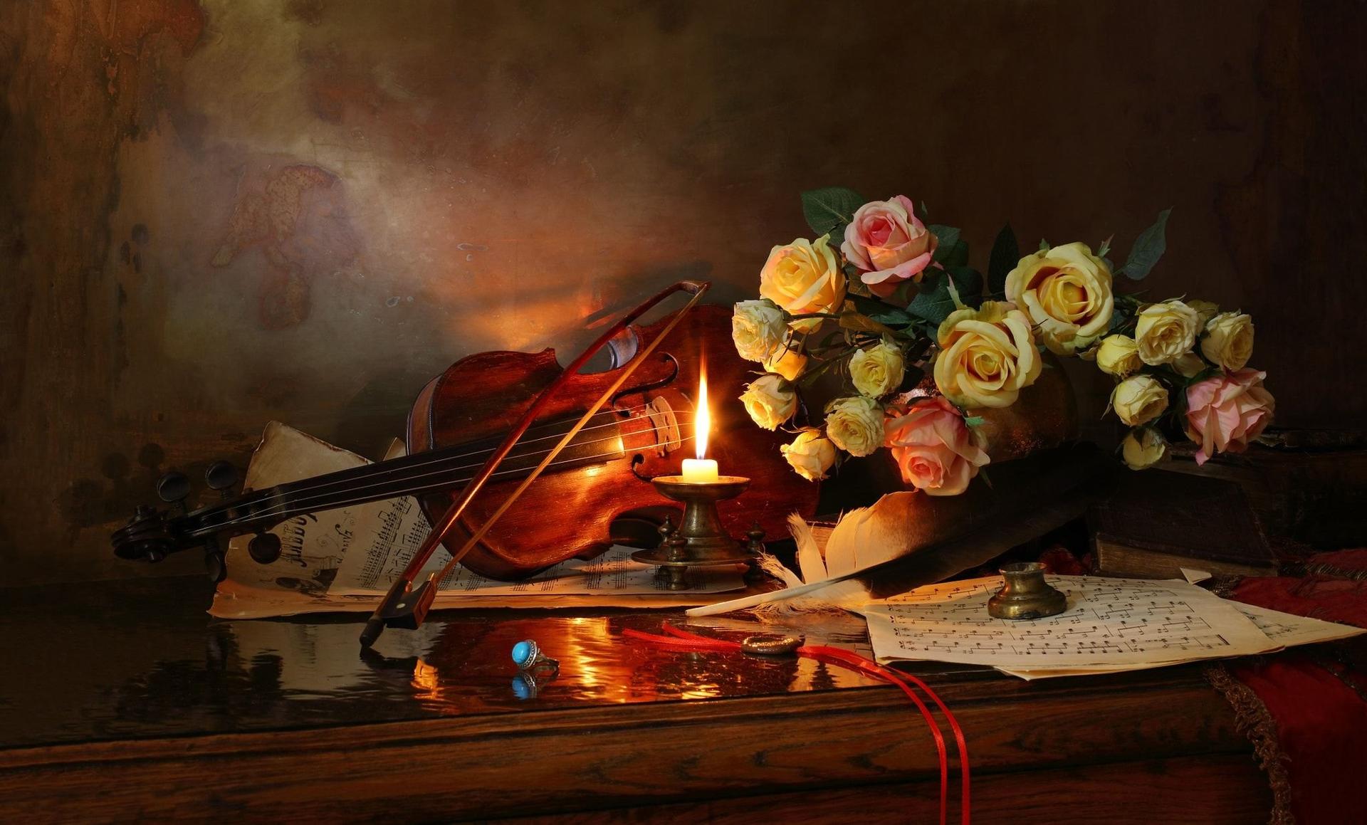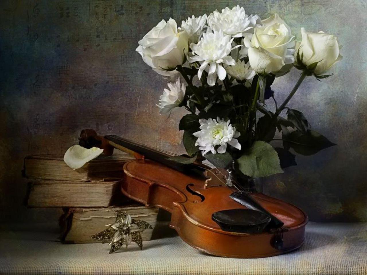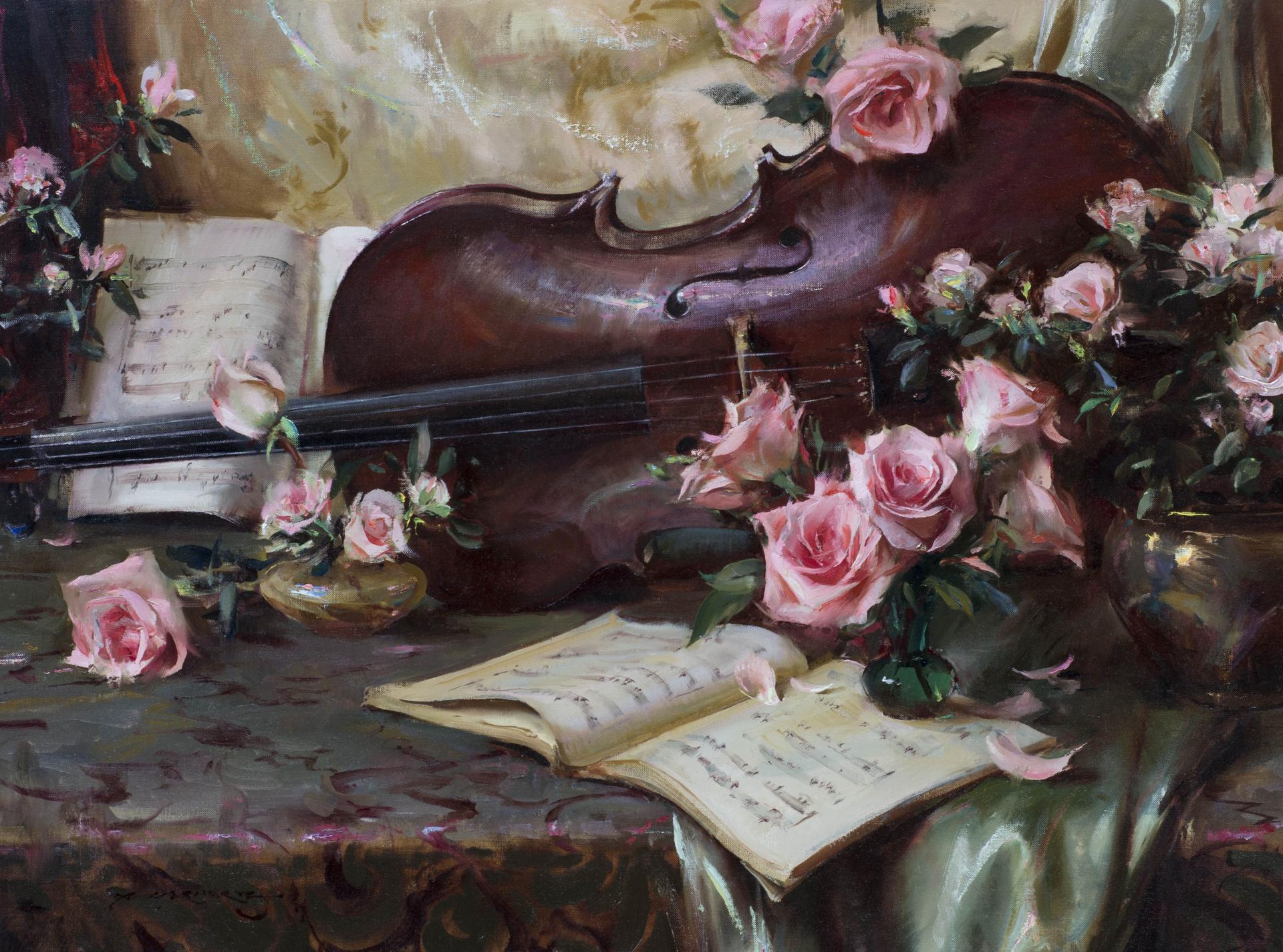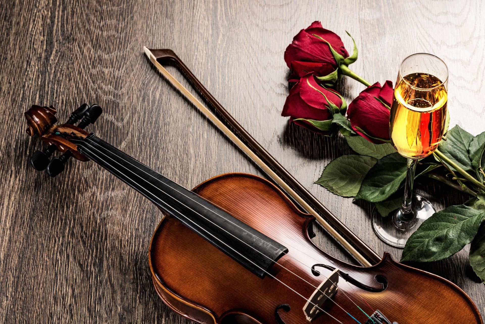 розы и музыкальные инструменты
