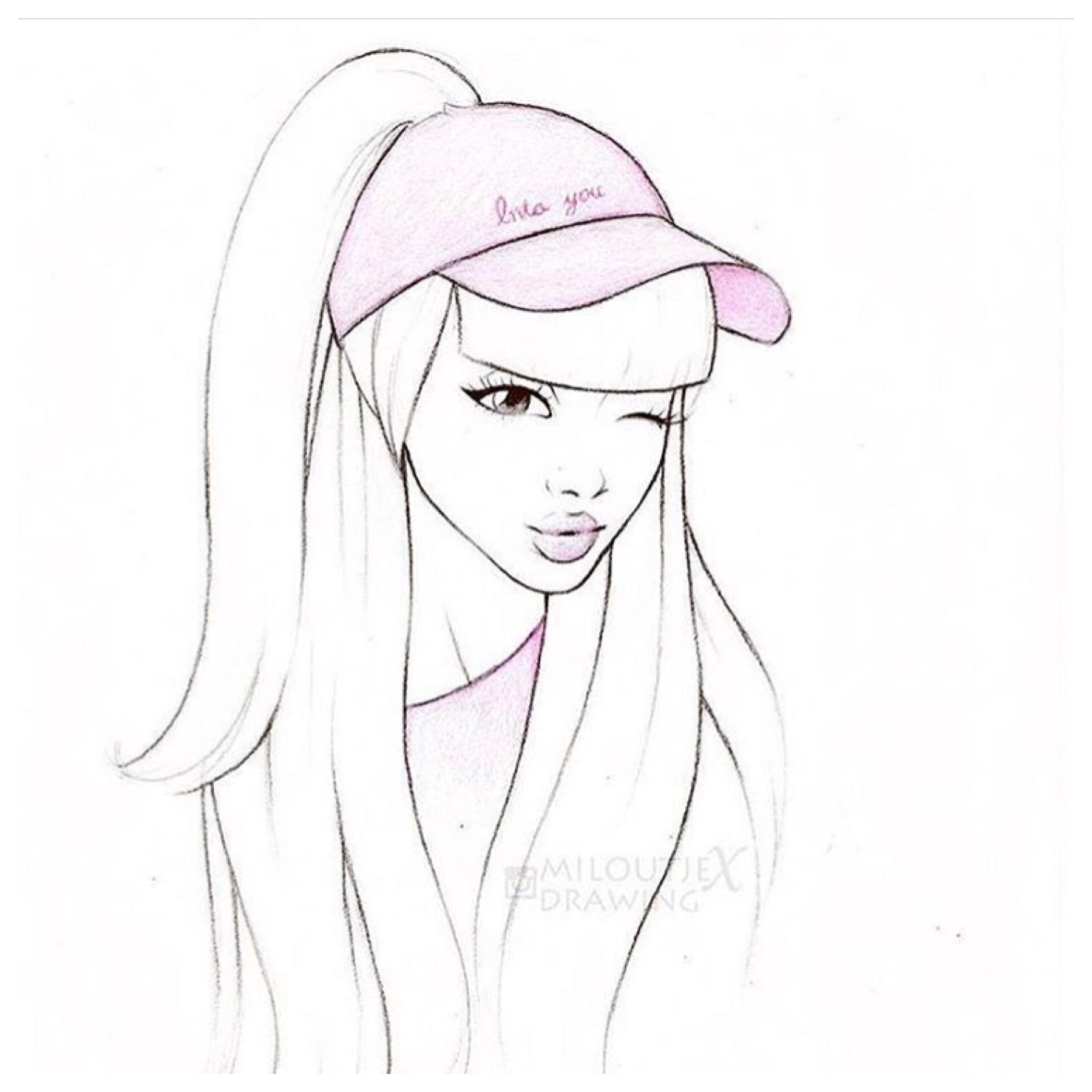 девушка в бейсболке карандашом