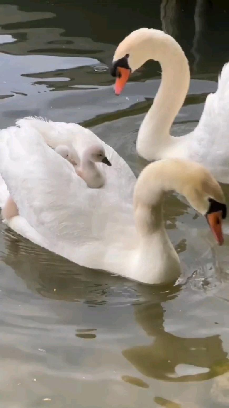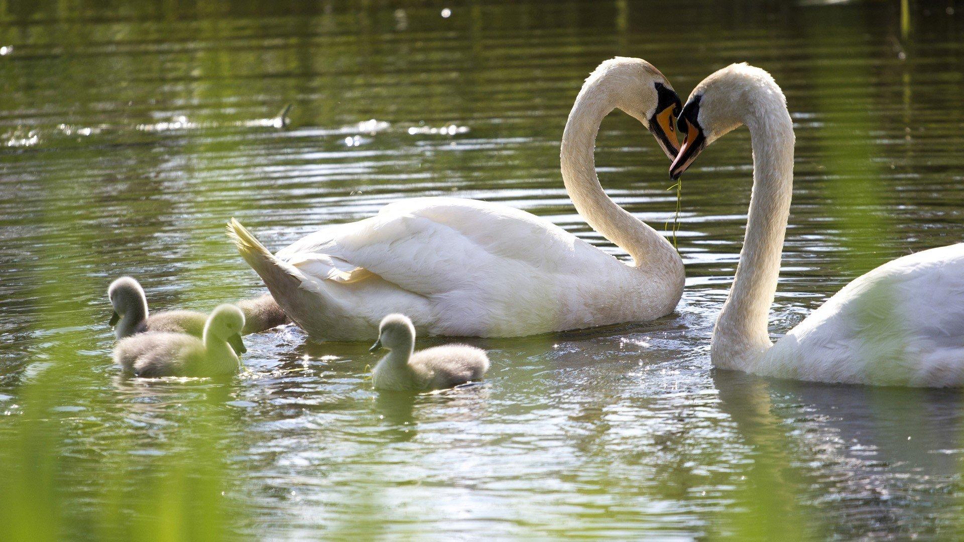 лебедь с птенцами