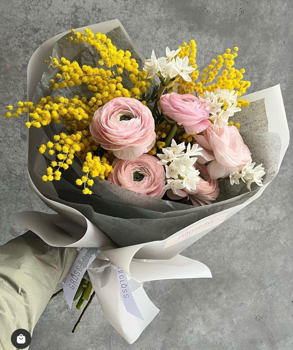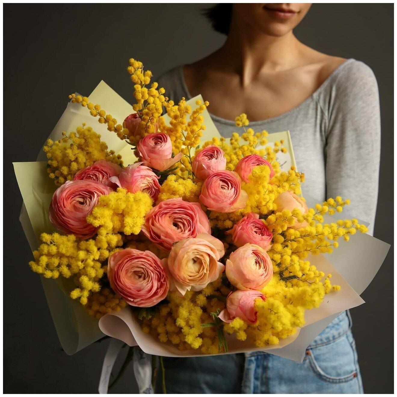 ранункулюсы с мимозой