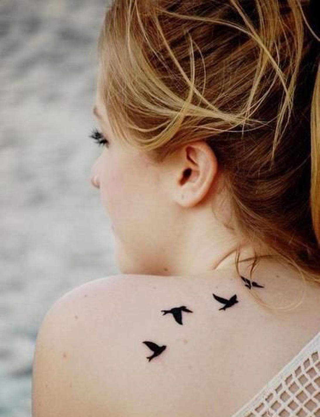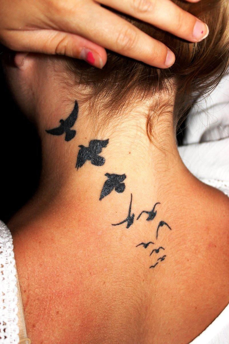 тату птички на шее