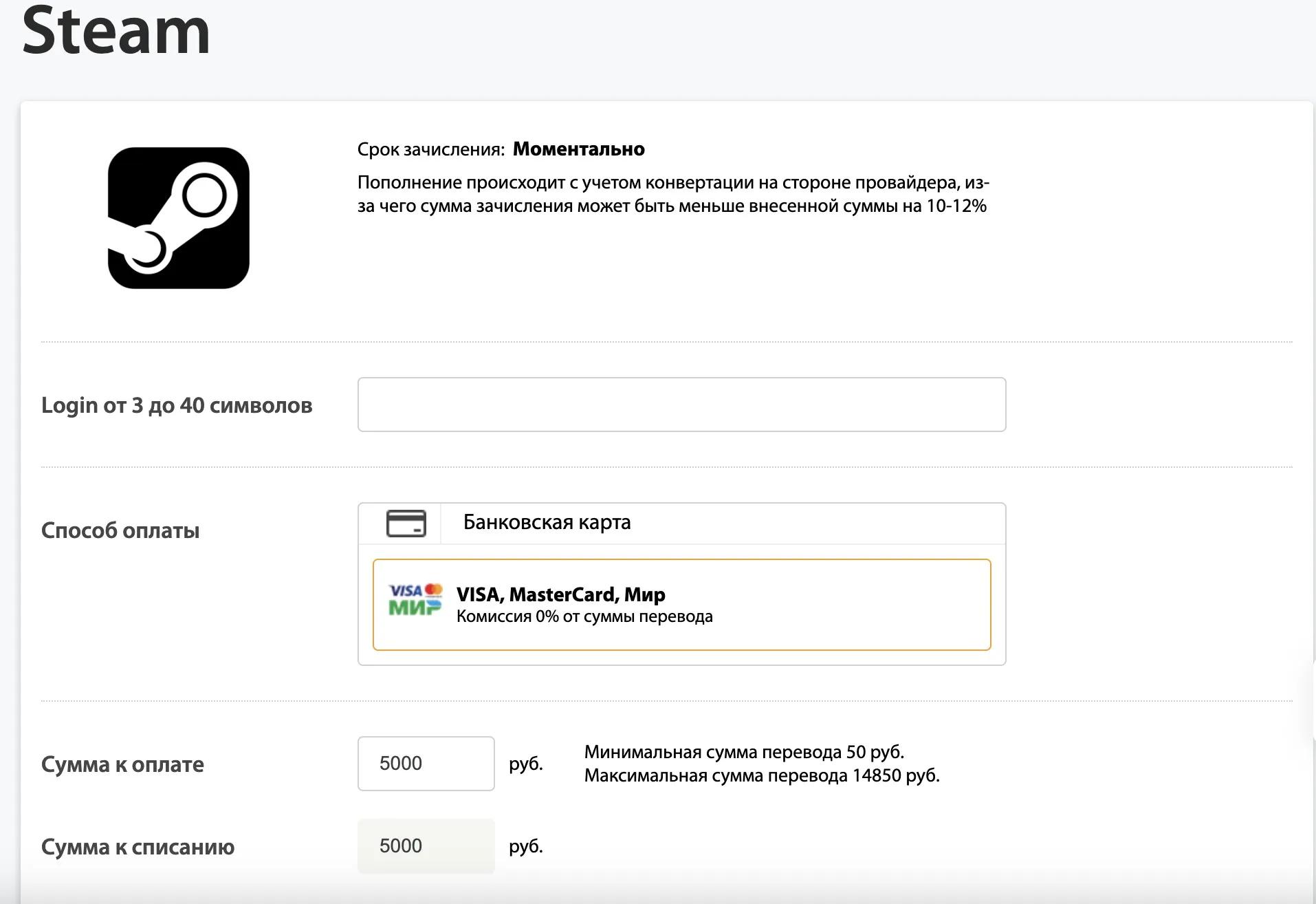 steam пополнение