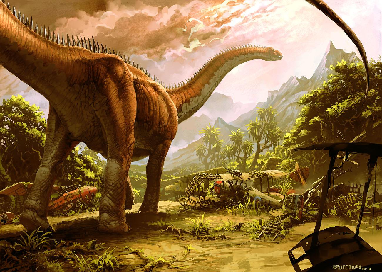 пейзаж с динозаврами