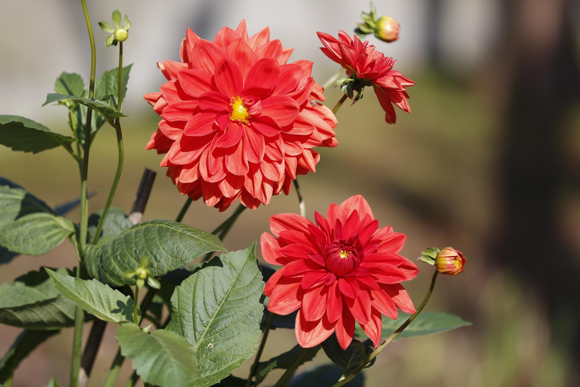 красные георгины