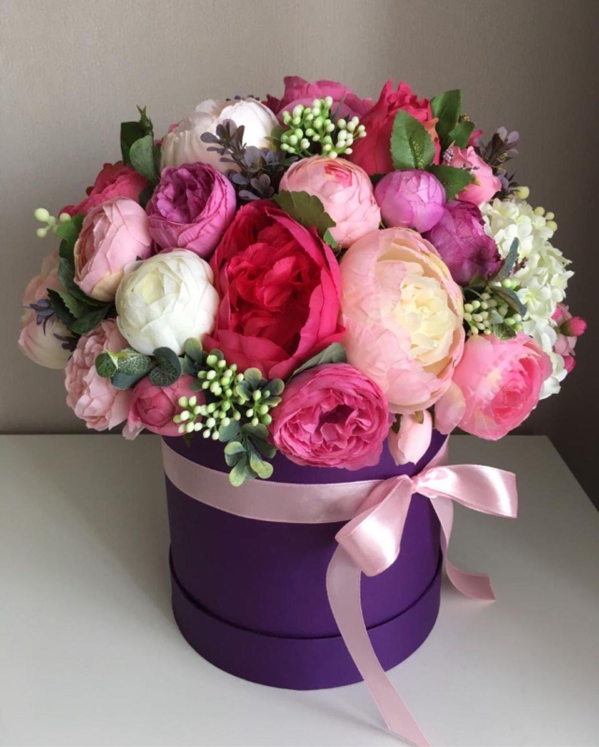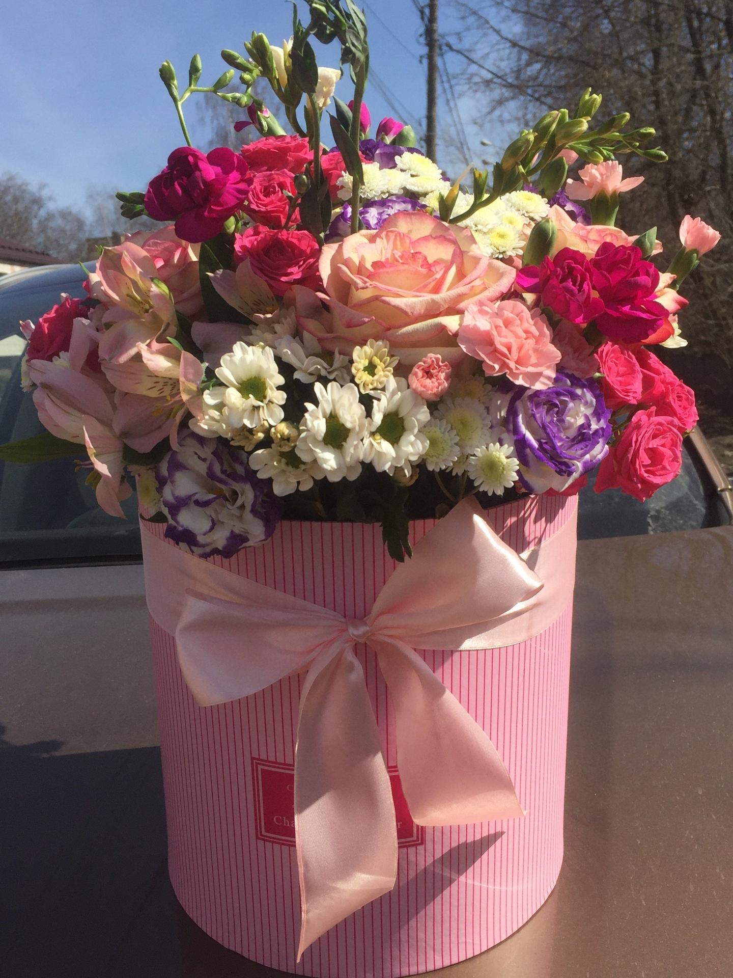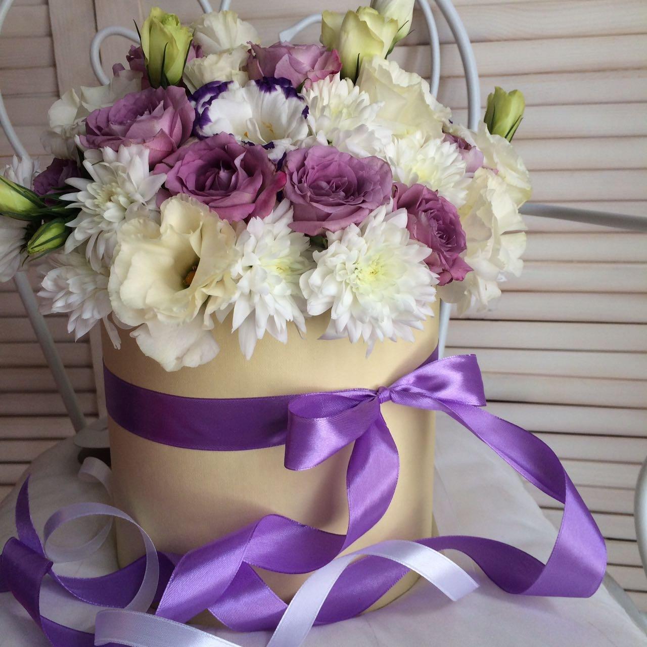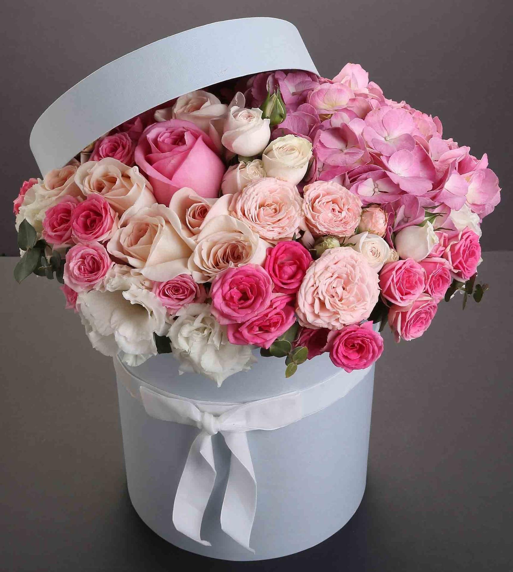 букеты цветов в шляпных коробках