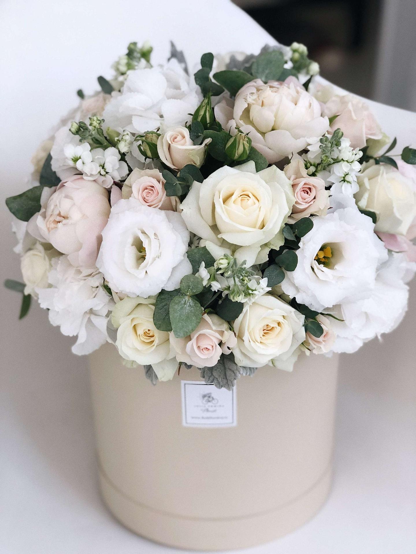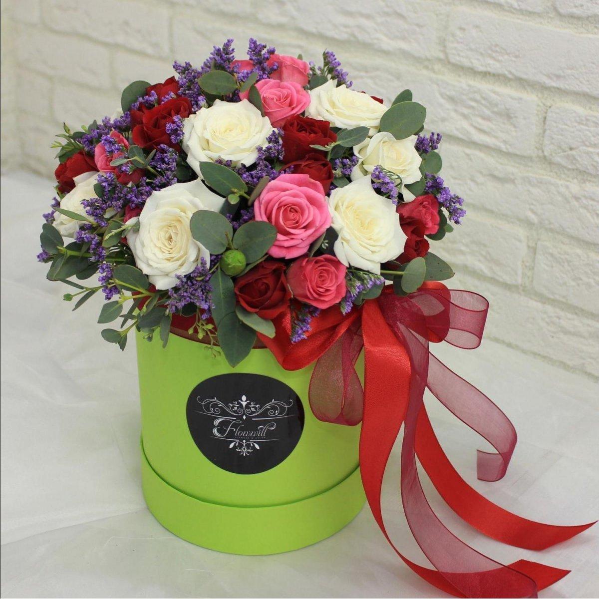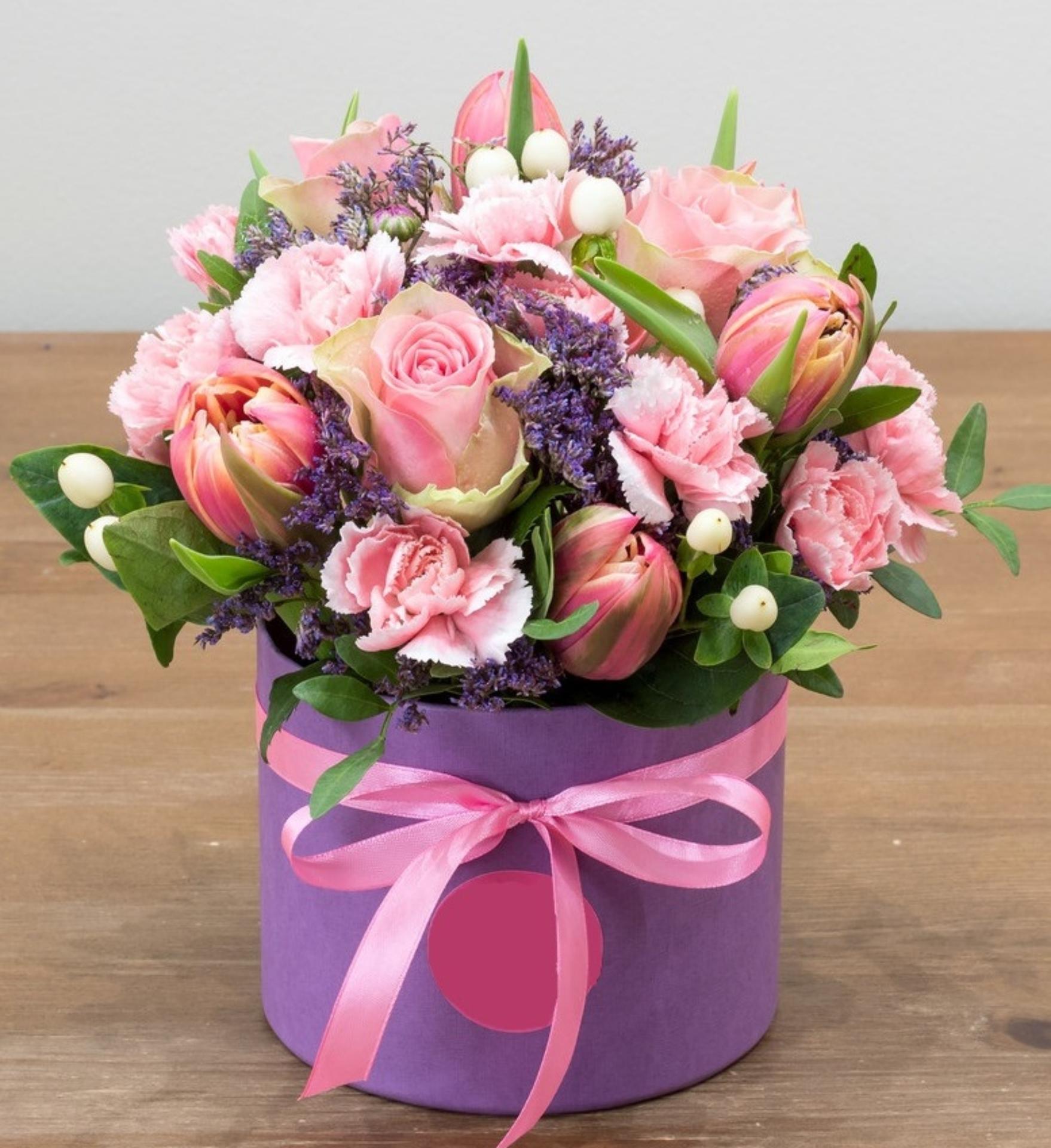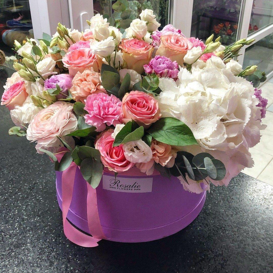 букеты цветов в шляпных коробках