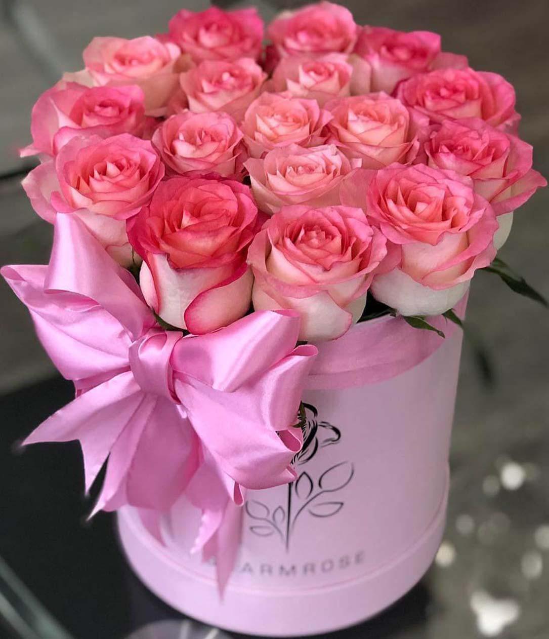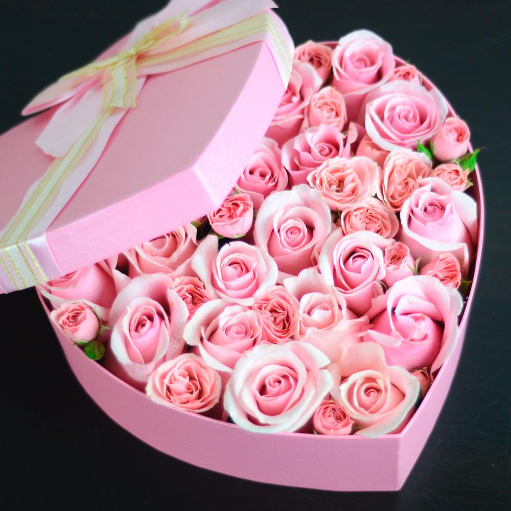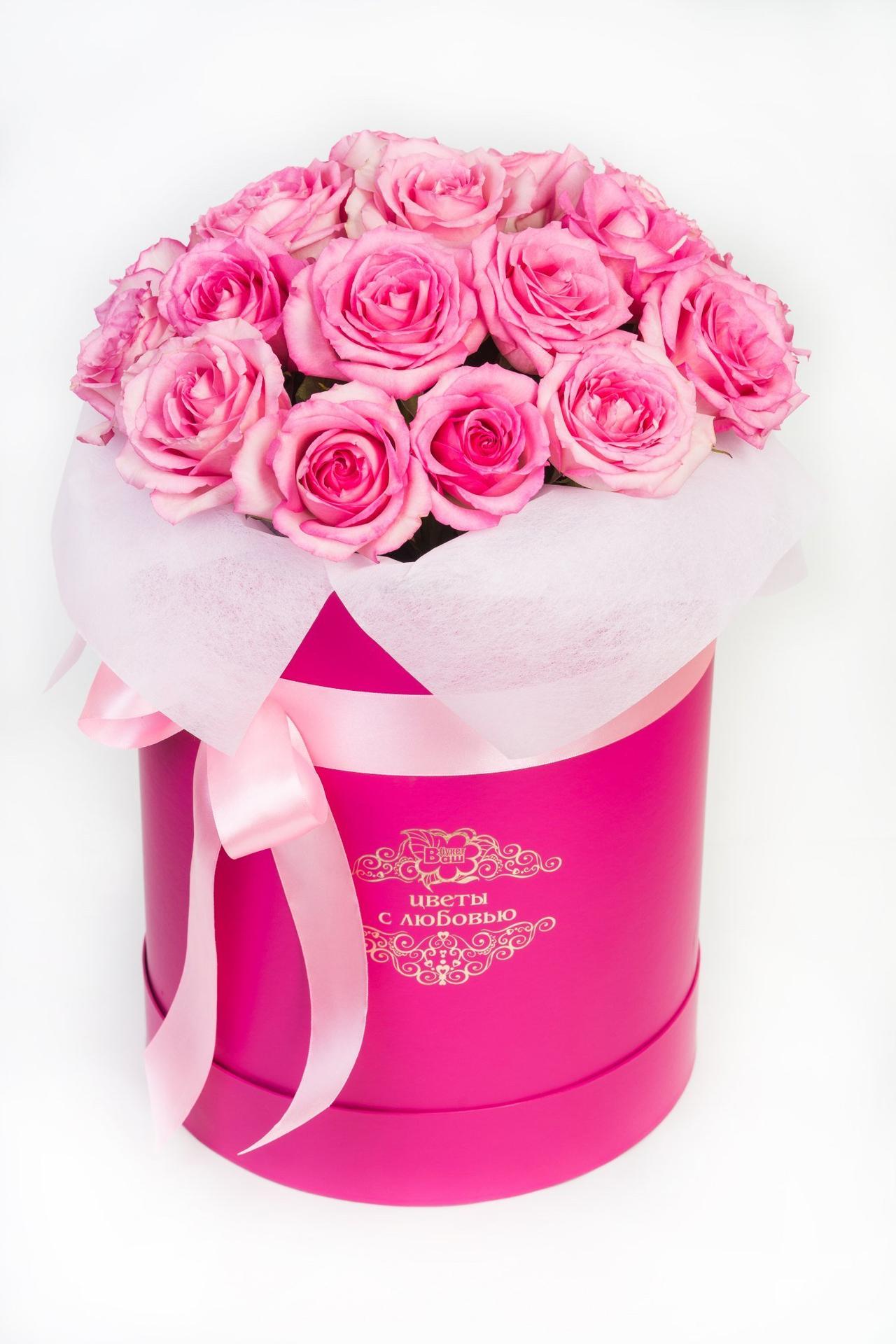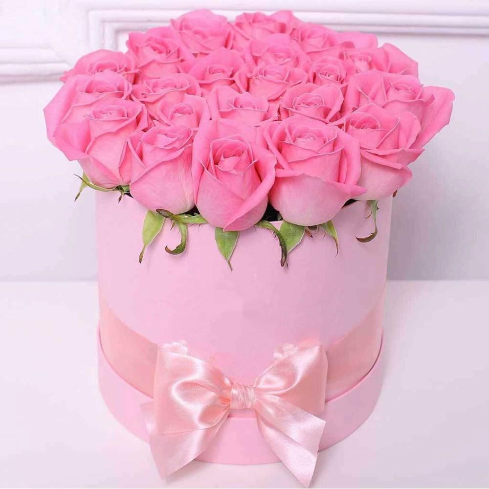 розовые розы в коробке