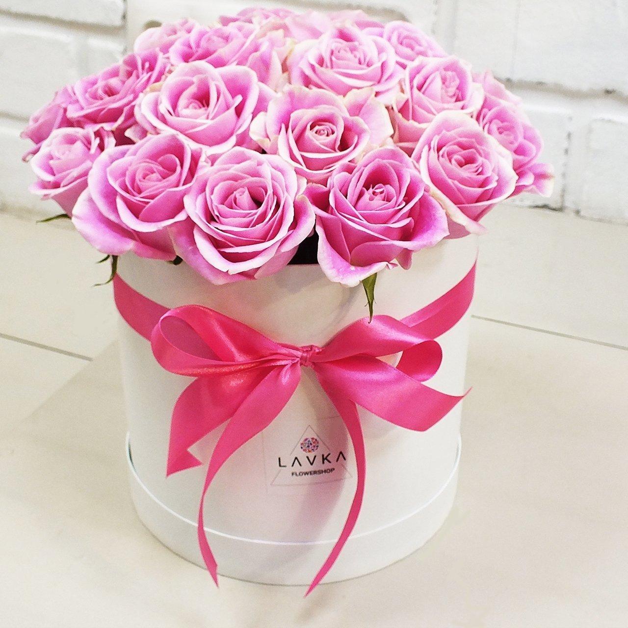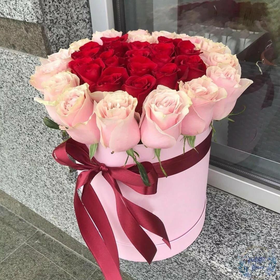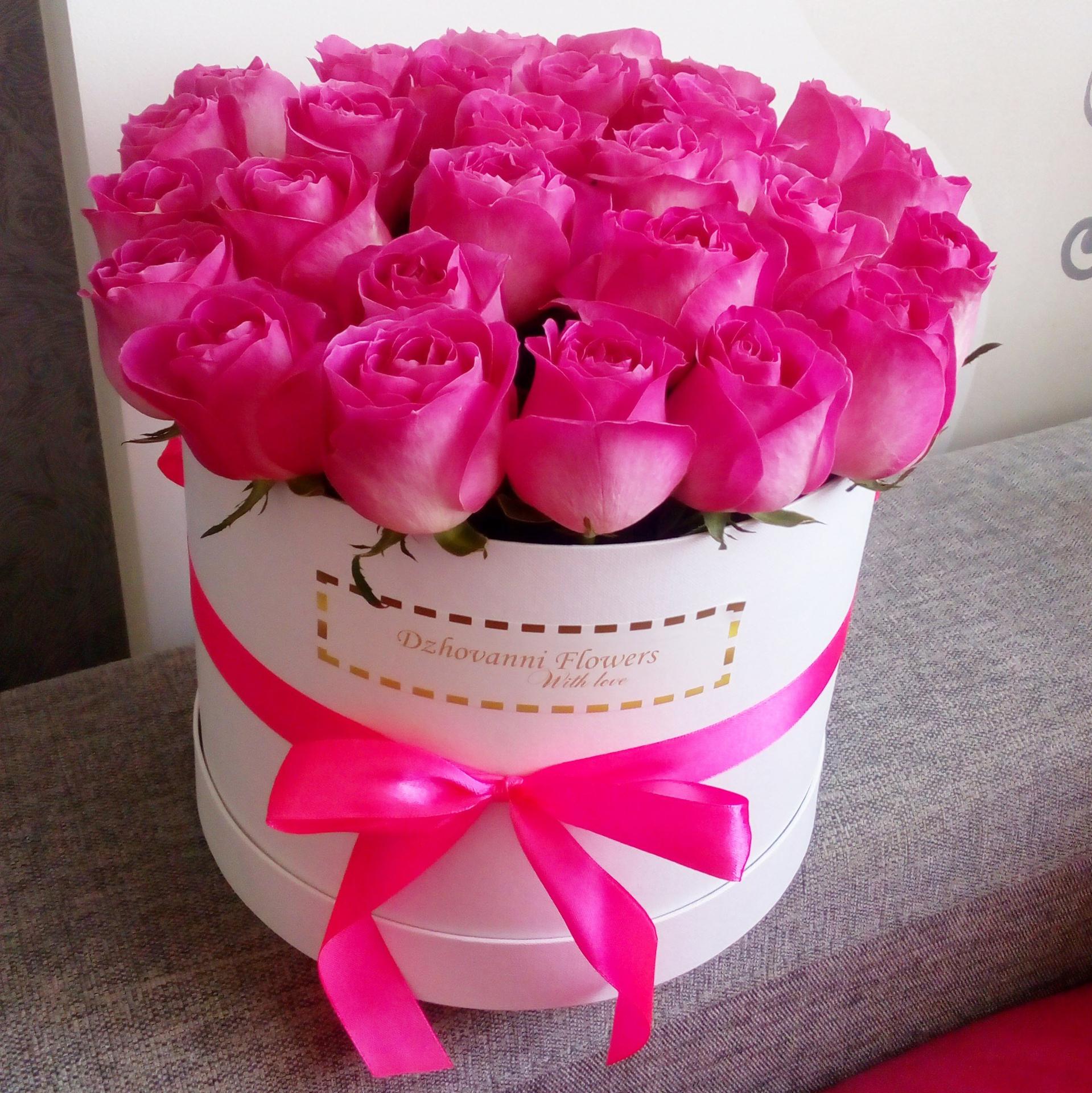 розовые розы в коробке