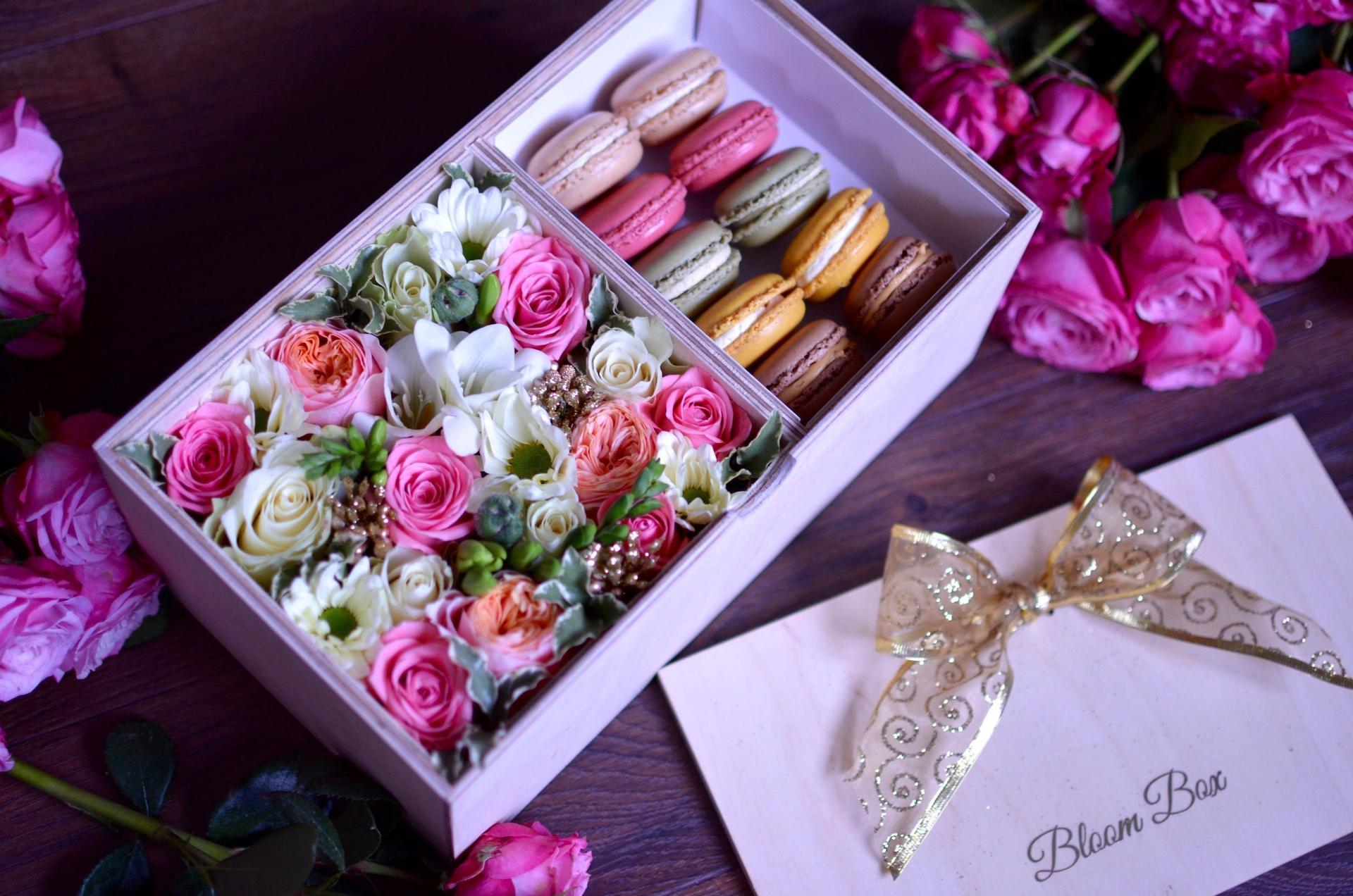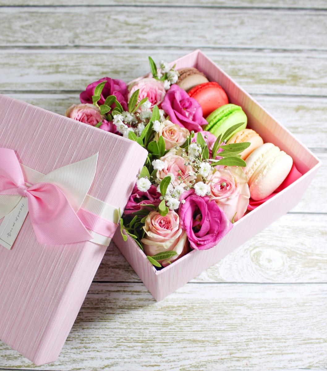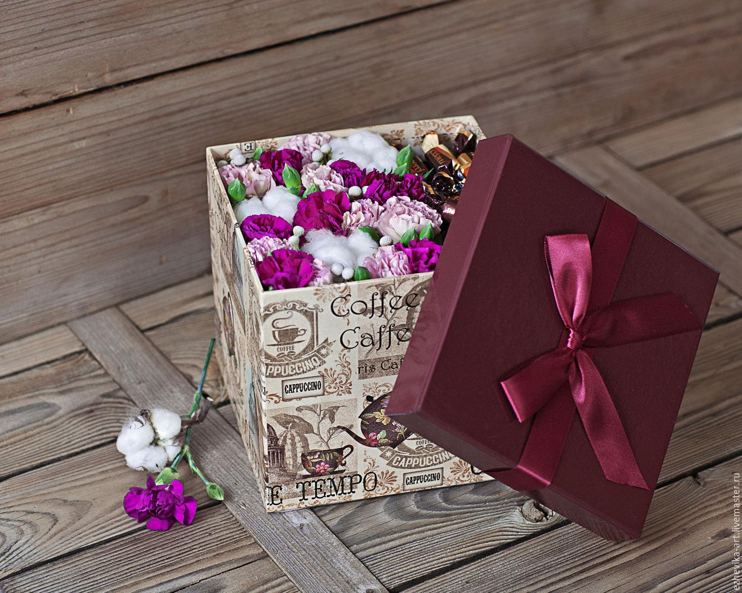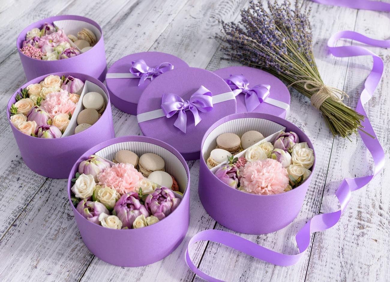 коробочки с цветами и сладостями