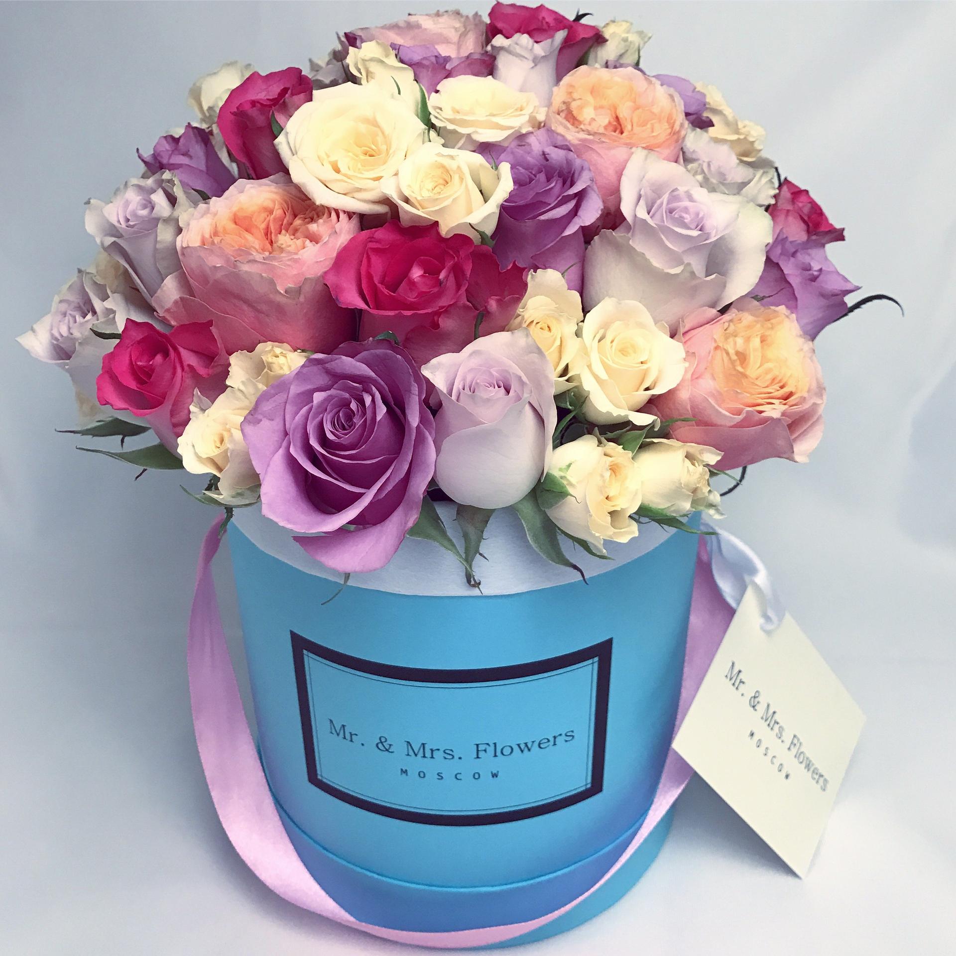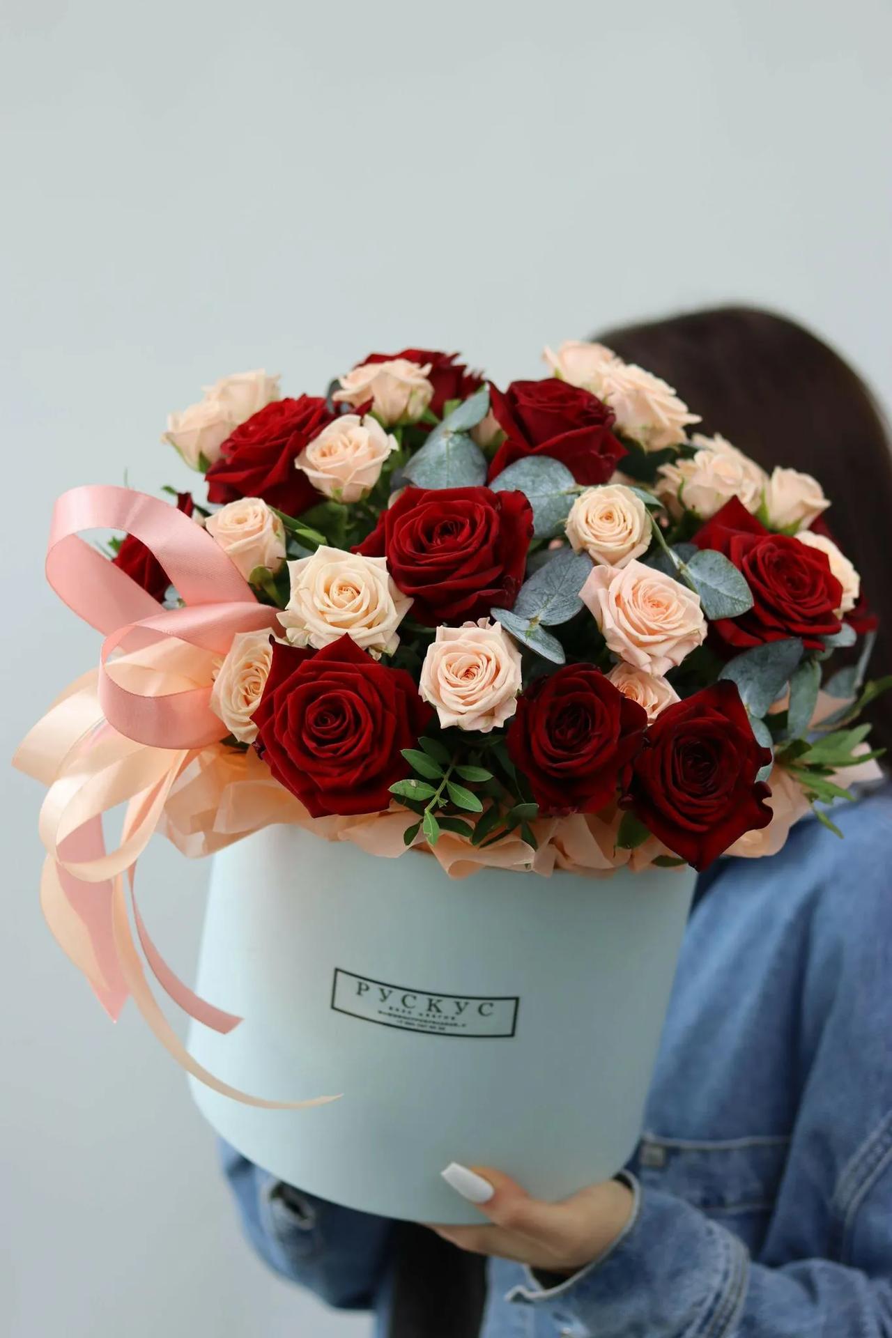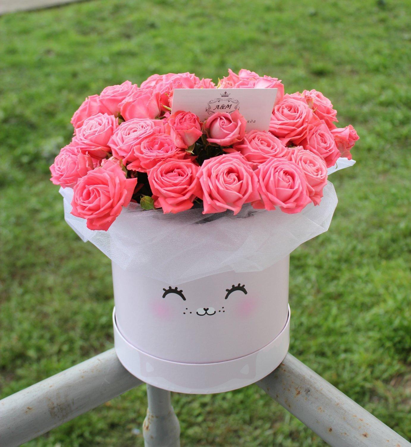 шляпная коробка с кустовыми розами