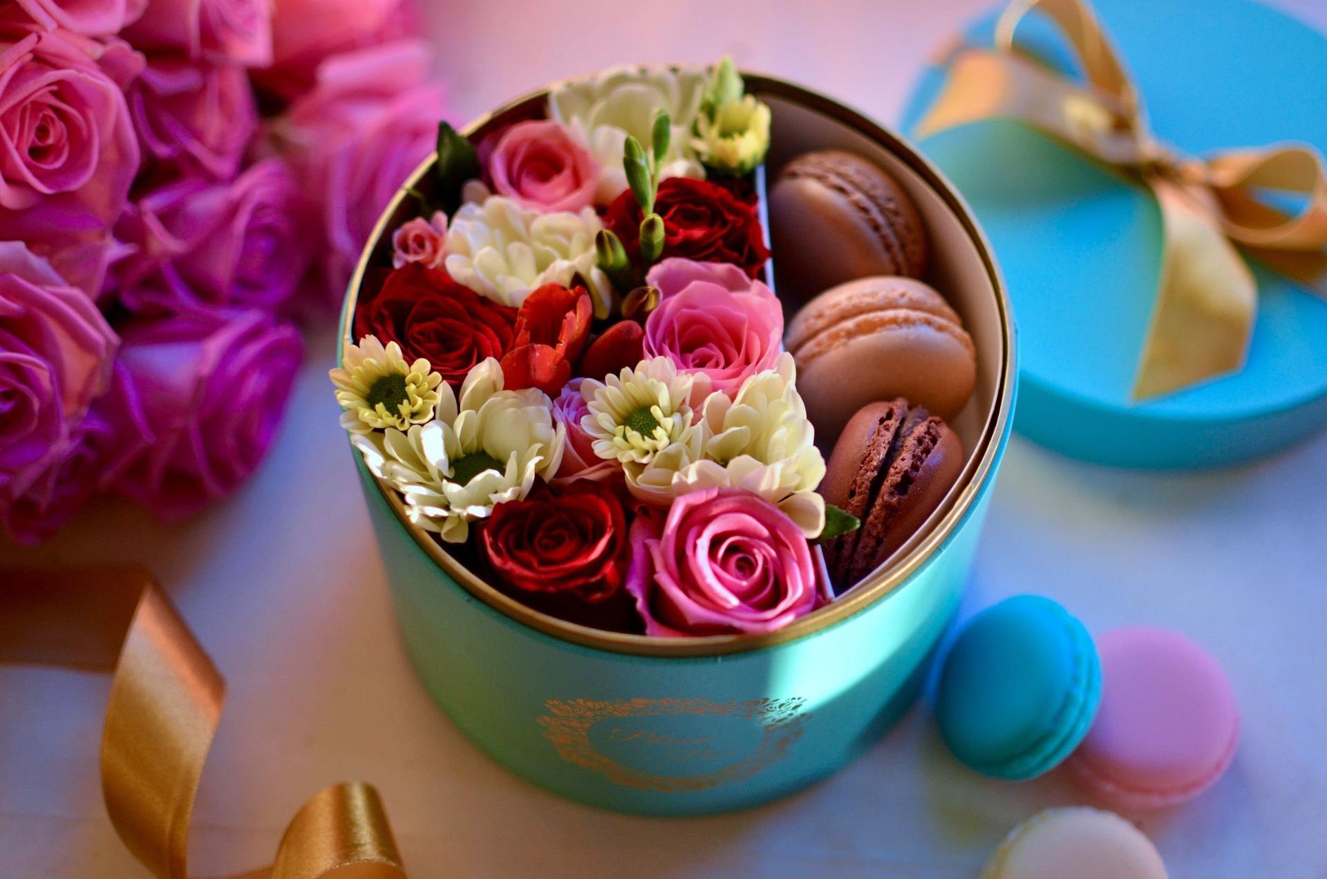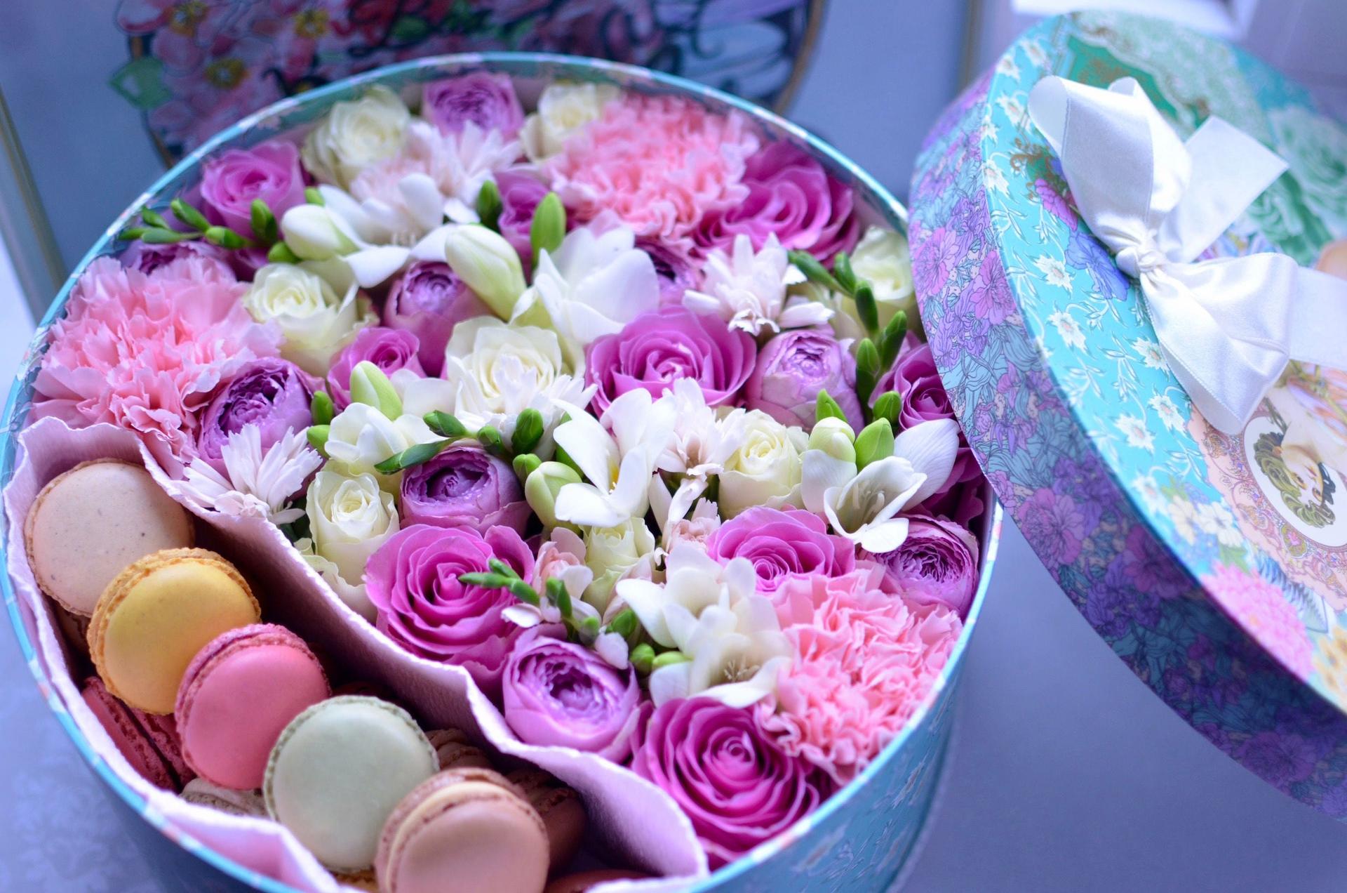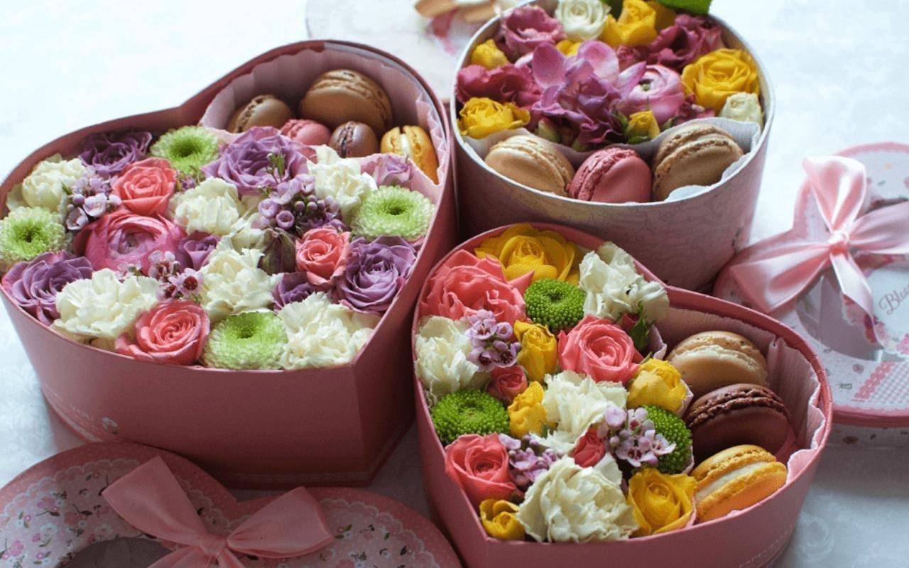 коробки с цветами и сладостями