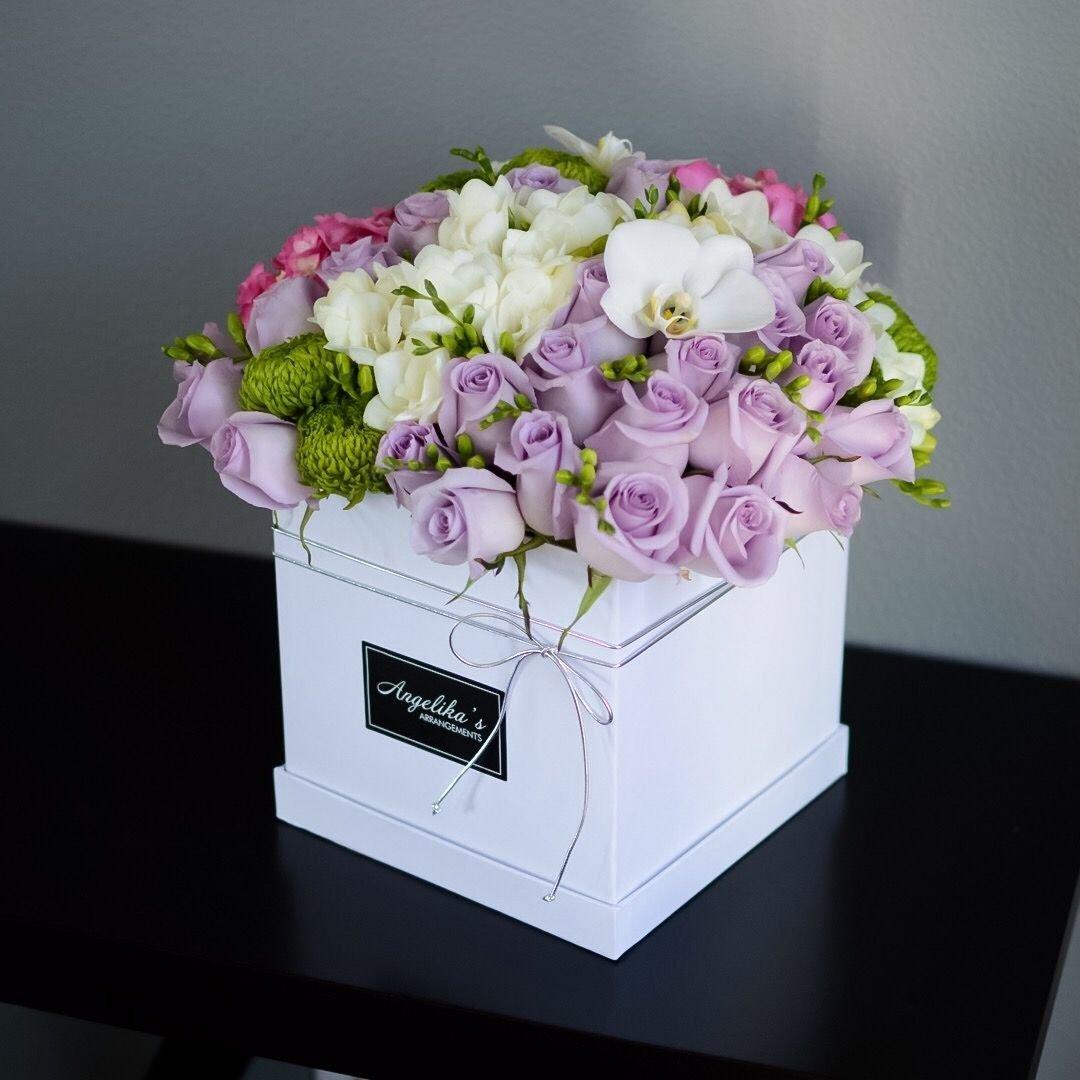композиции из цветов в коробке