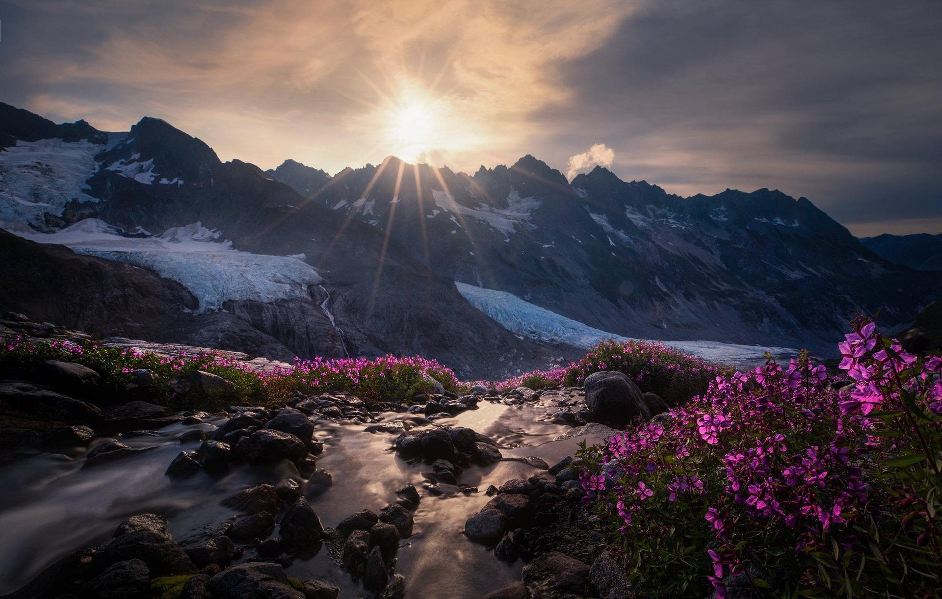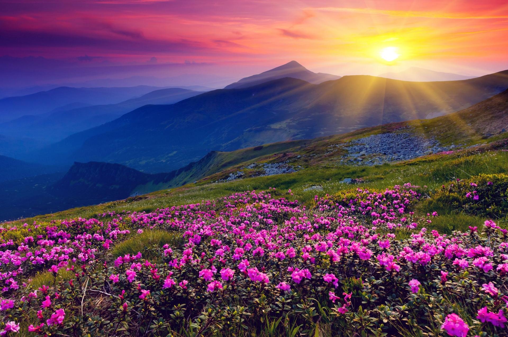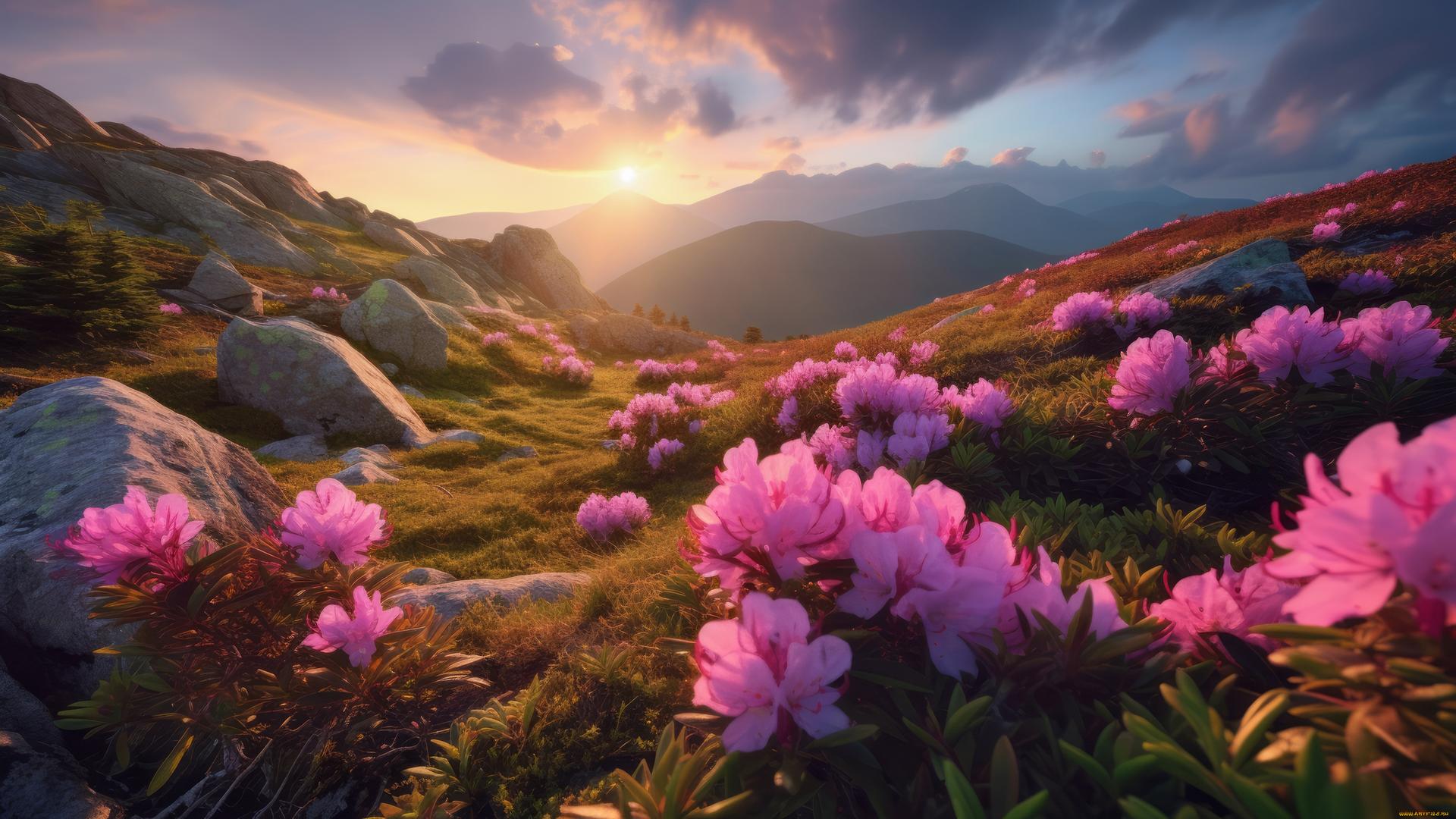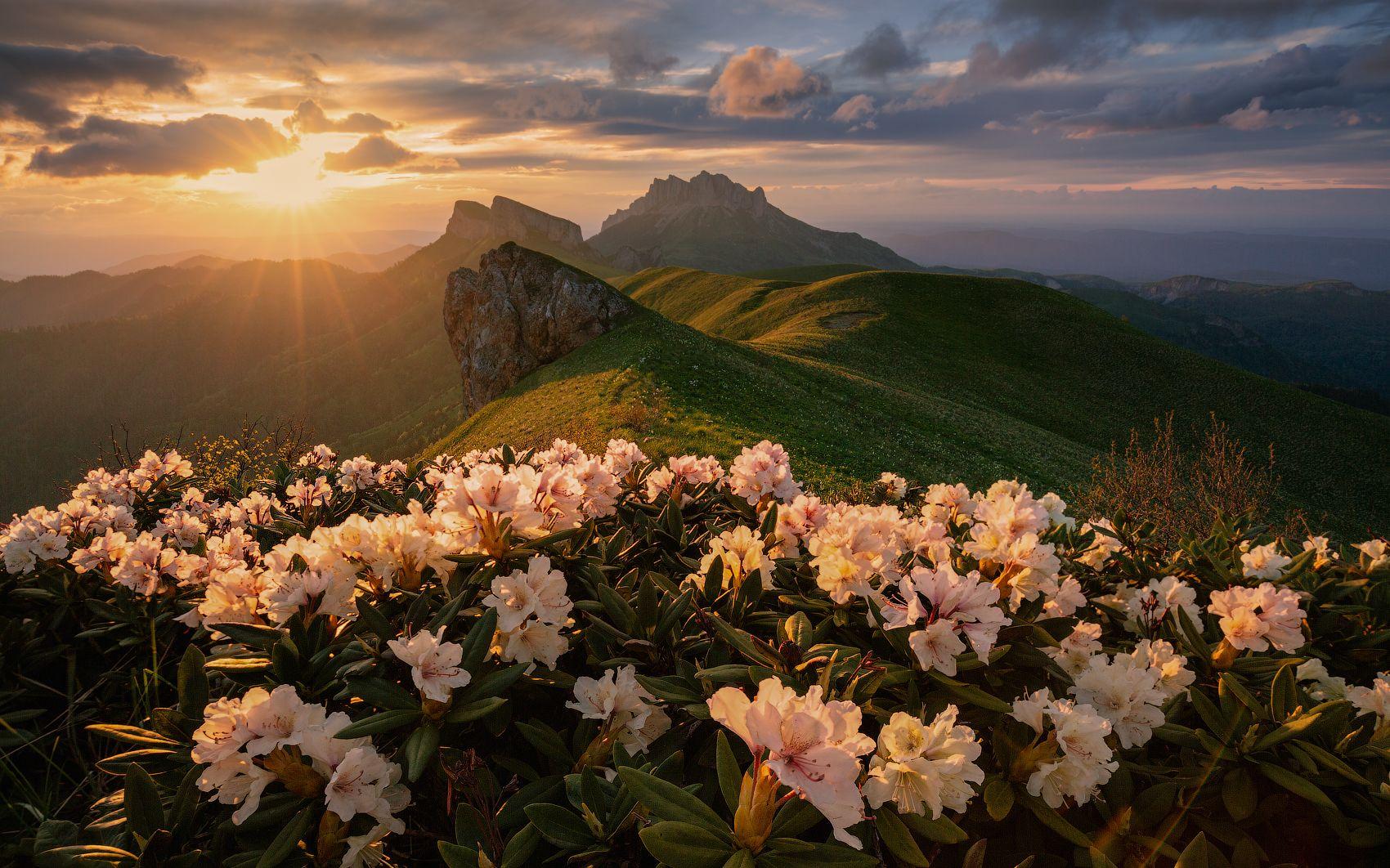 Горы с цветами