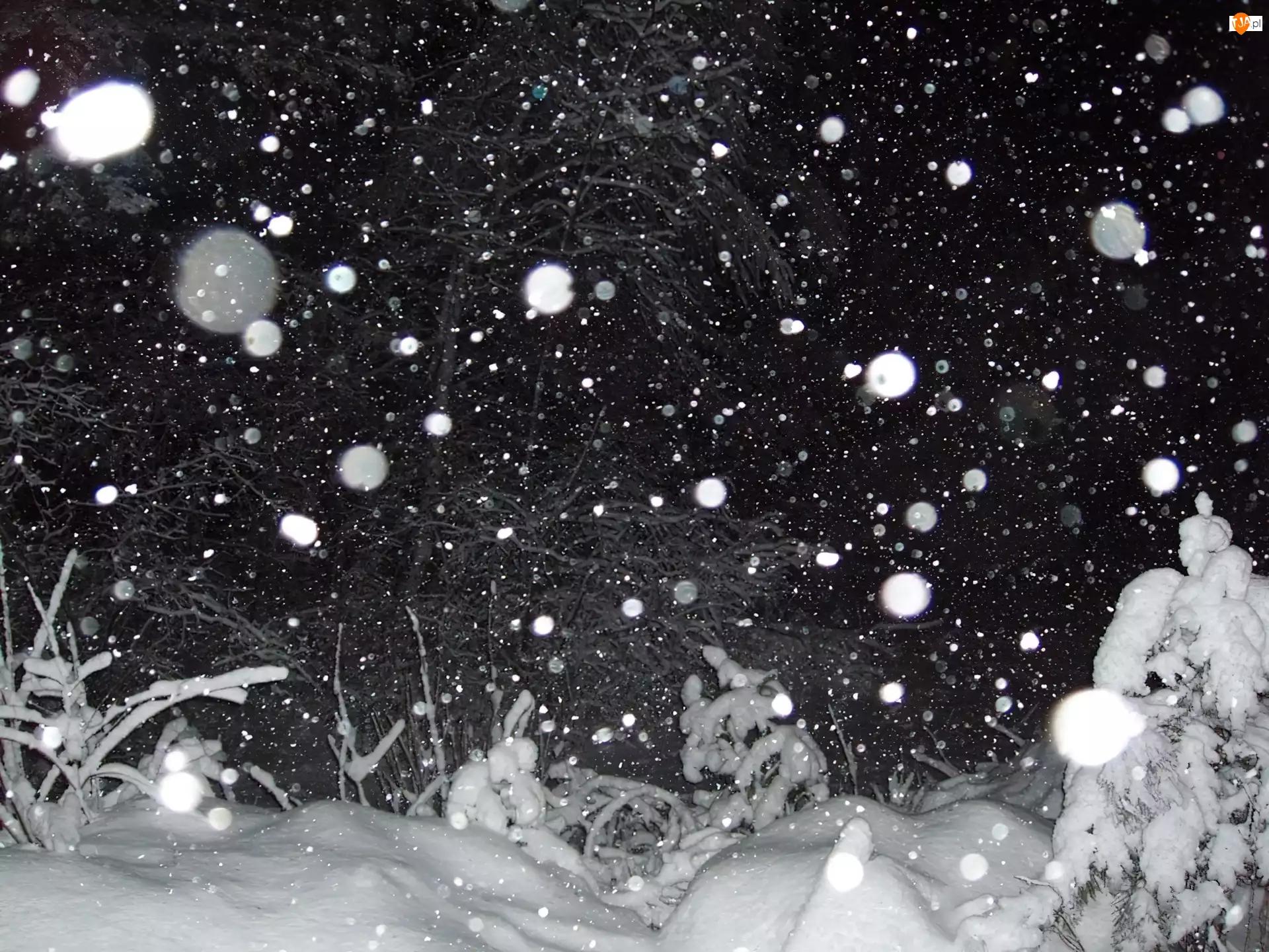 хлопья снега летят