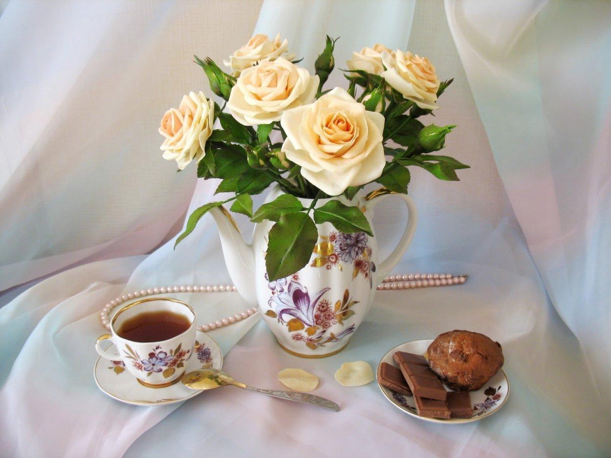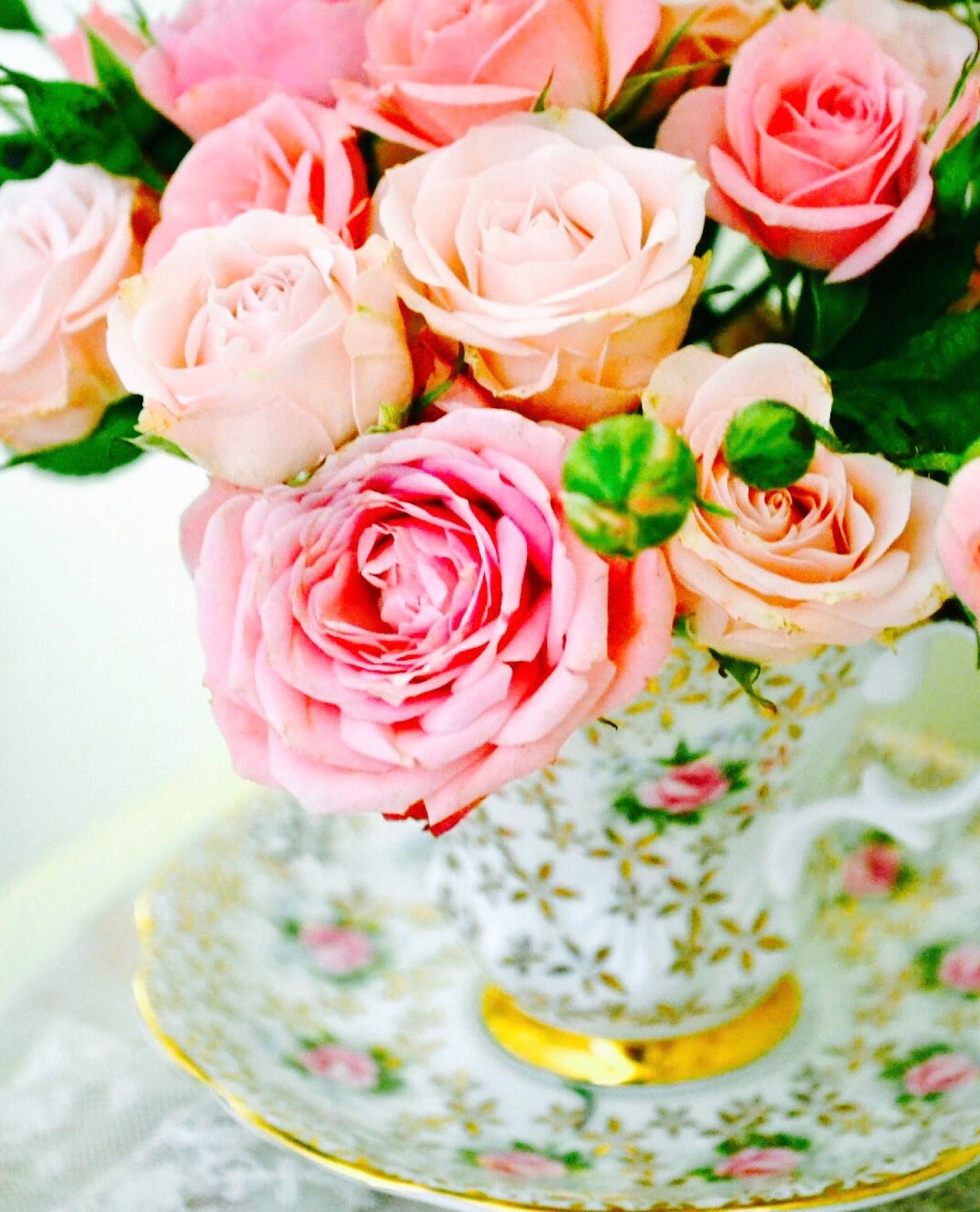 розы в чашке
