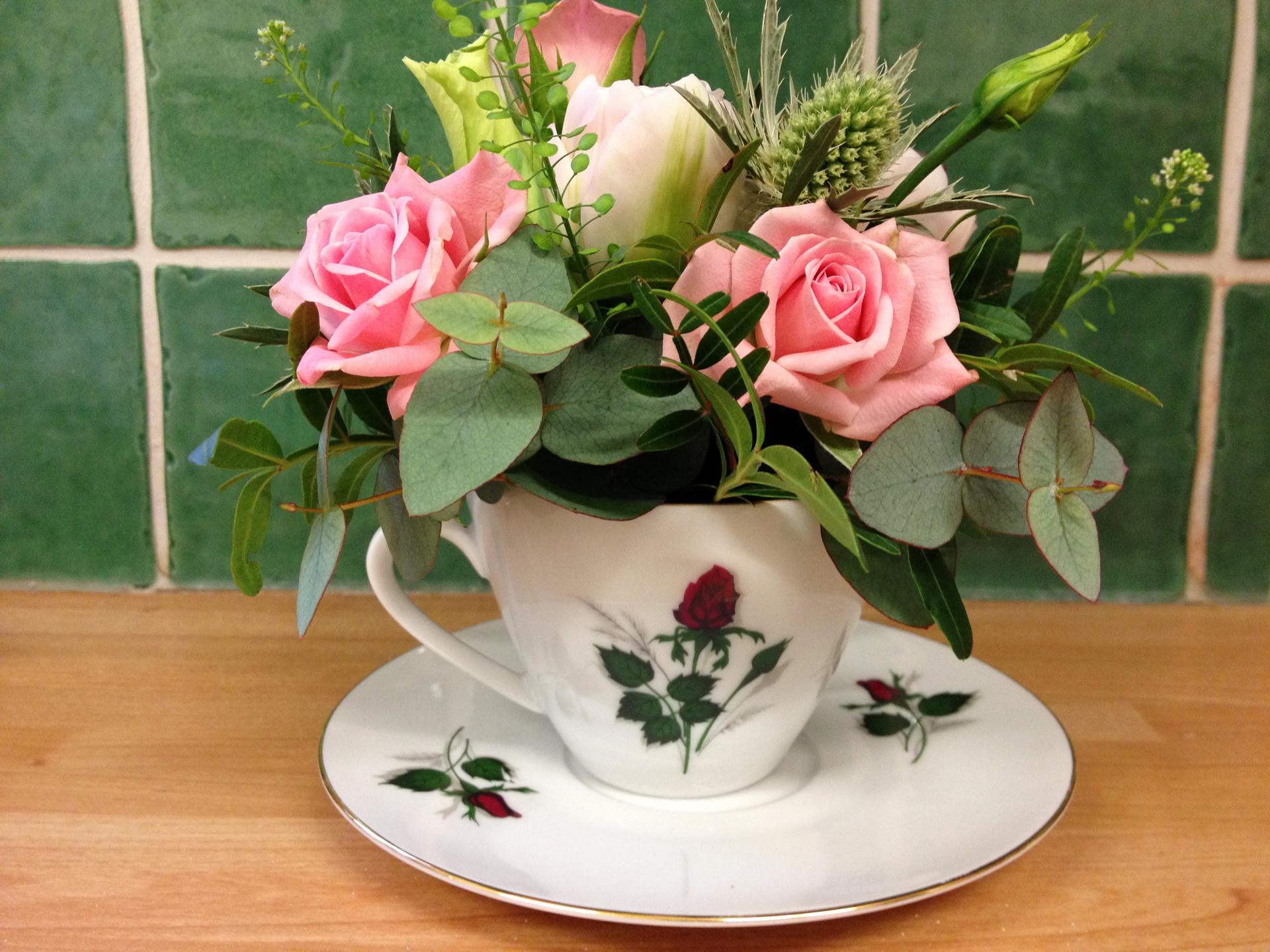 цветочная композиция в чашке