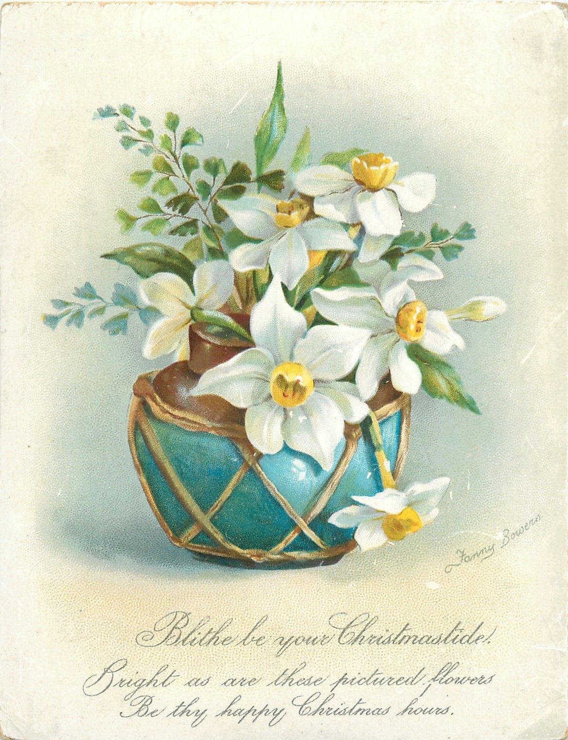 старые открытки с нарциссами