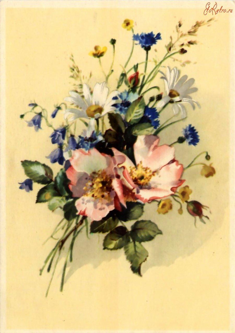 открытка полевые цветы