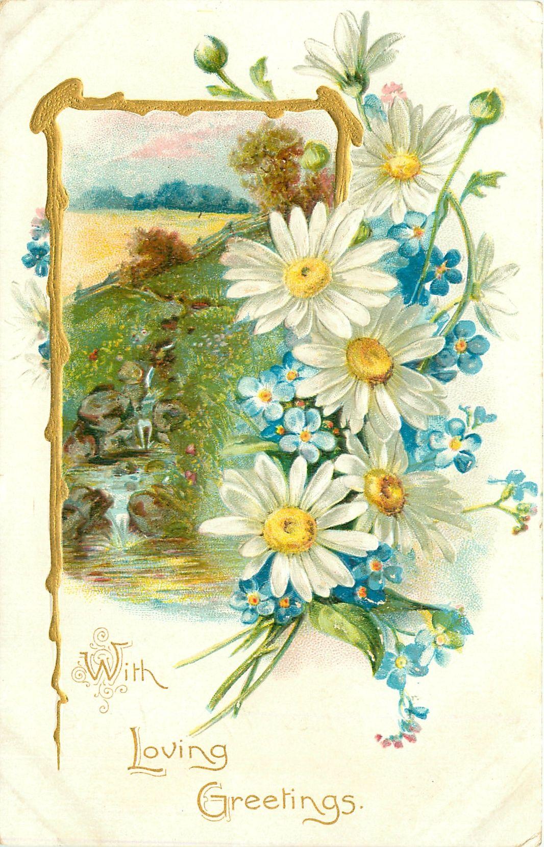 винтажная открытка с цветами