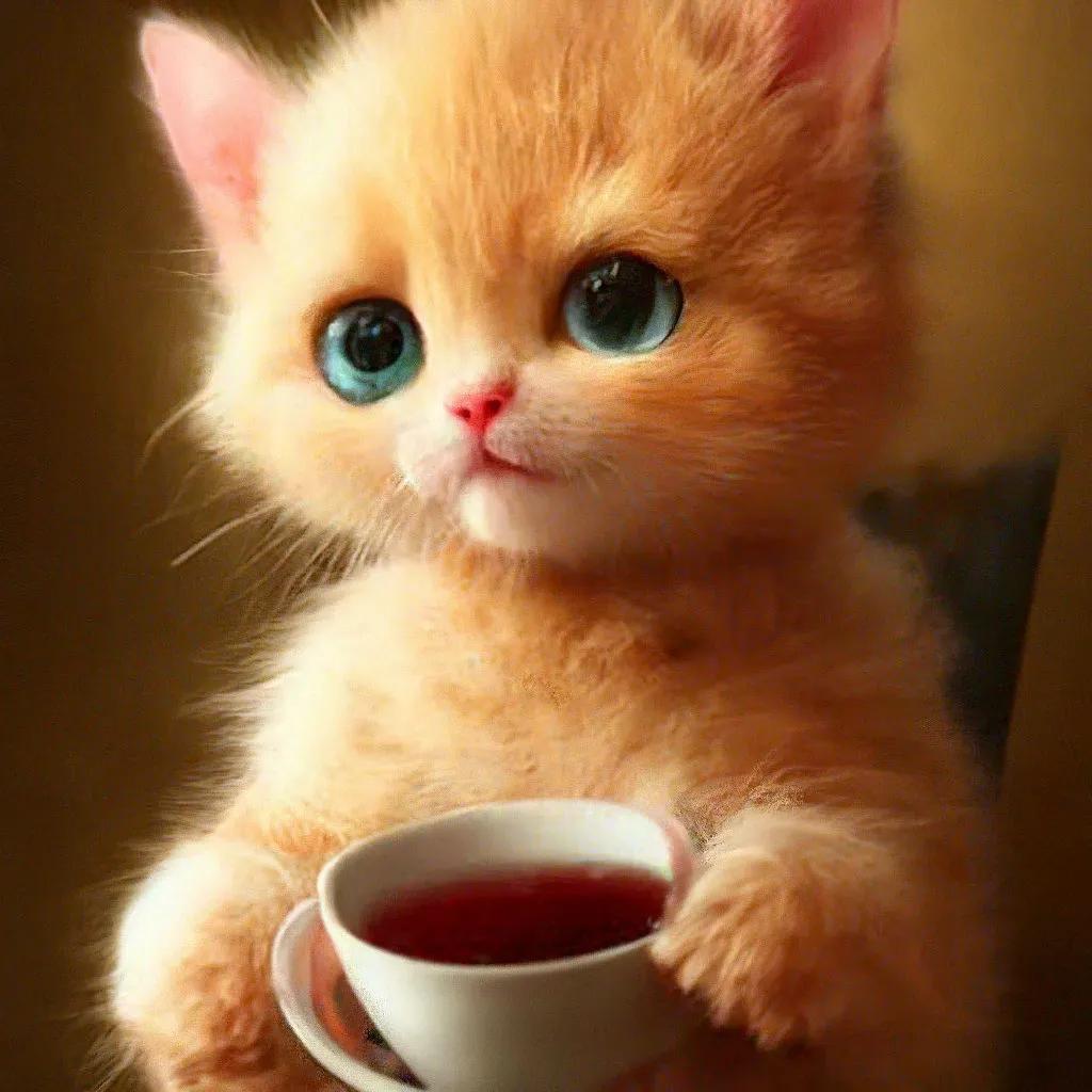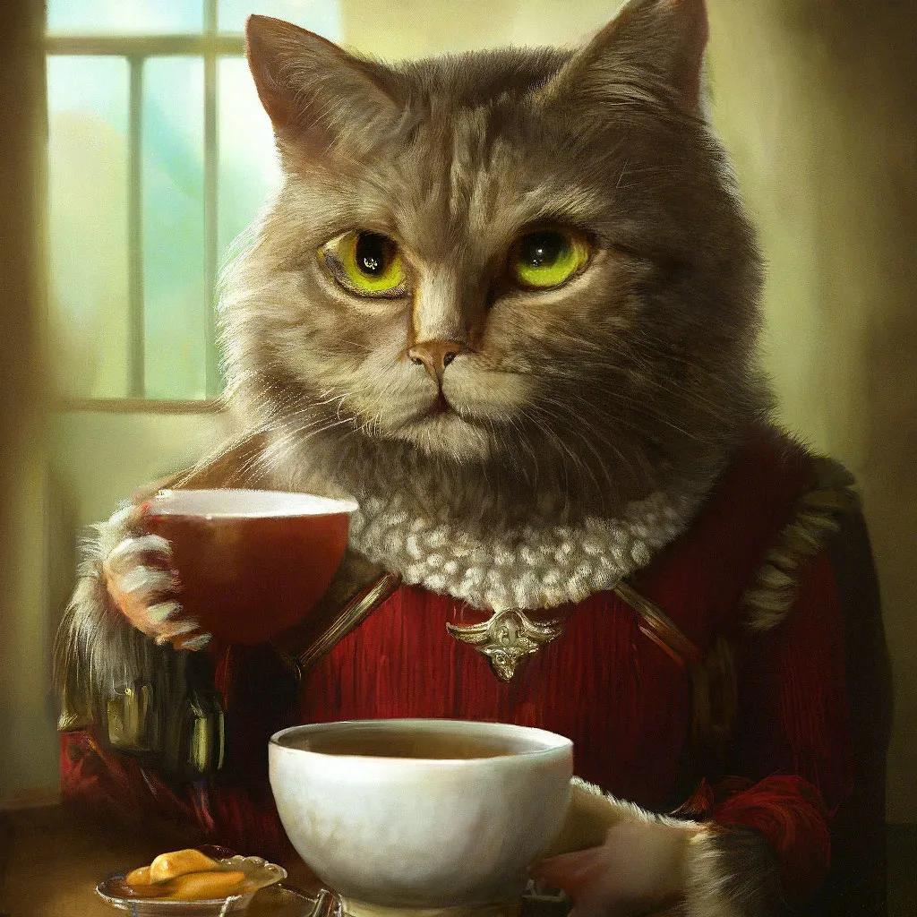 кот пьет чай